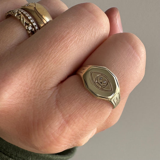 reimagined V I N T A G E // memento mori vision / 10k memento mori evil eye signet ring / size 6.5