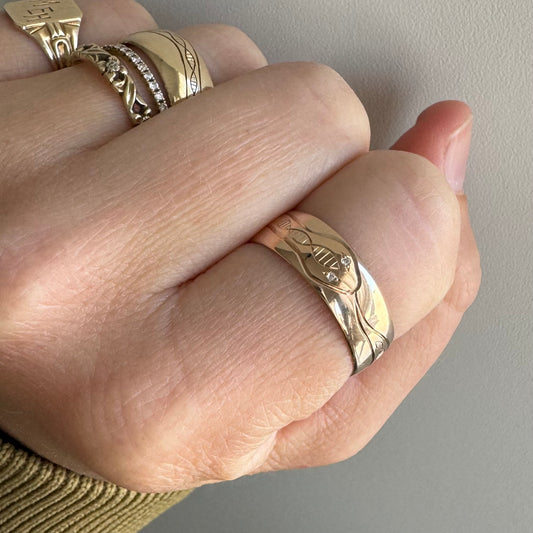 reimagined A N T I Q U E // ouroboros commitments / 10k and diamond engraved ouroboros snake band / size 8.25ish