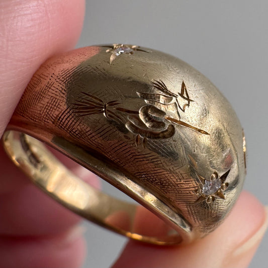 reimagined V I N T A G E // the best witch bombe / 10k and diamond witch dome ring / size 8+