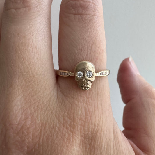 reimagined V I N T A G E // memento mori / 10k + 14k + diamonds / vintage style skull stacking ring / size 7.25+