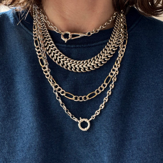reimagined V I N T A G E // carabiner clasp / re-worked sterling silver trombone chain / 18.5", 37.2g