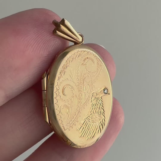 reimagined V I N T A G E // treasure seeker / 9k rosy gold oval locket with new crow engraving / a pendant