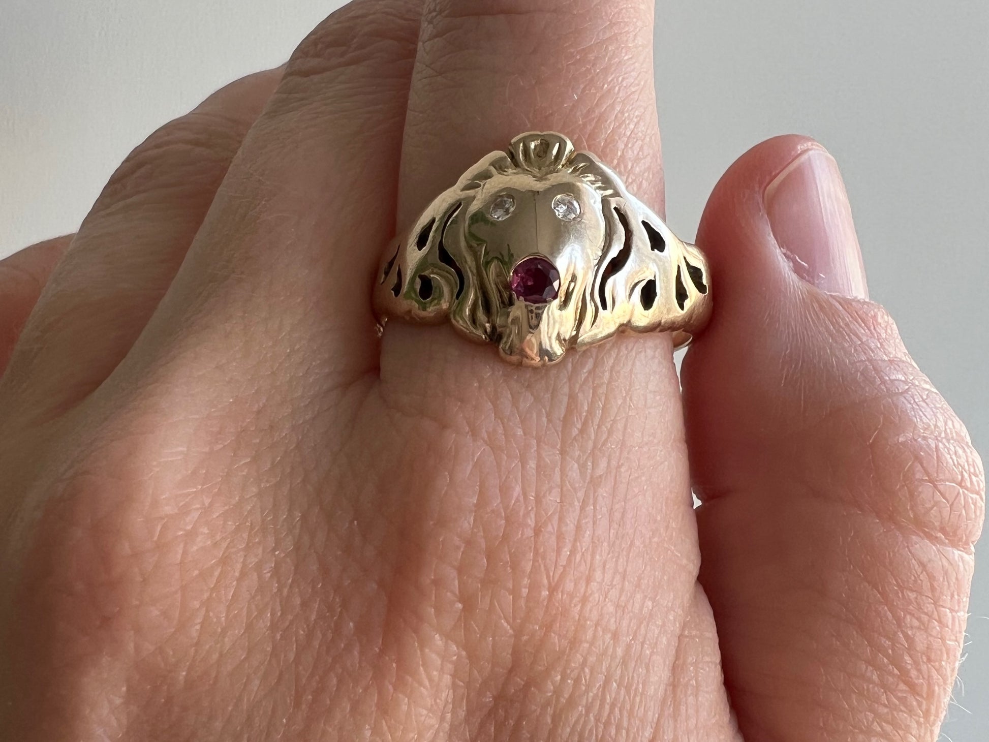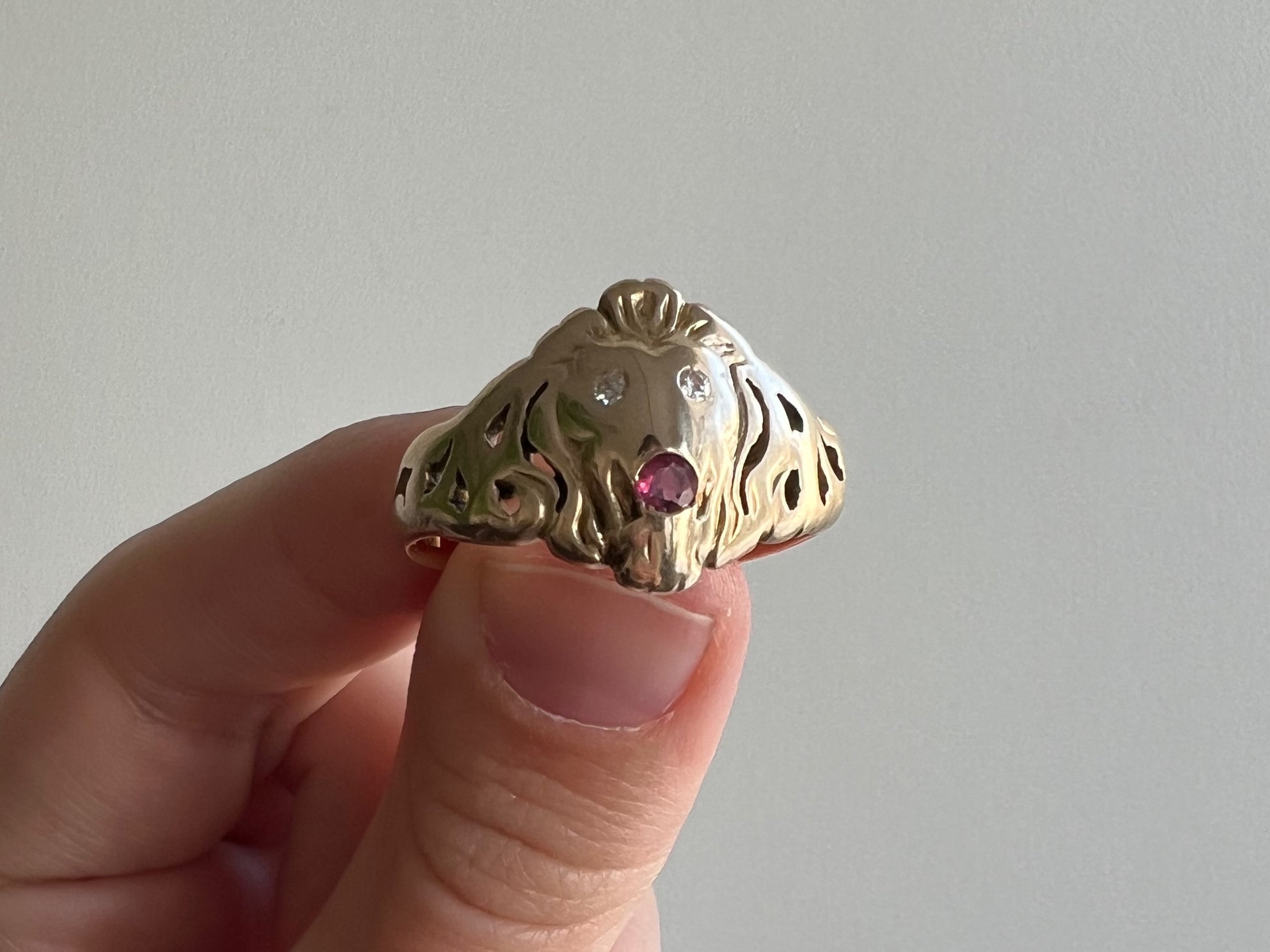 A N T I Q U E // aging roar / 10k yellow gold with ruby and diamond / size 11