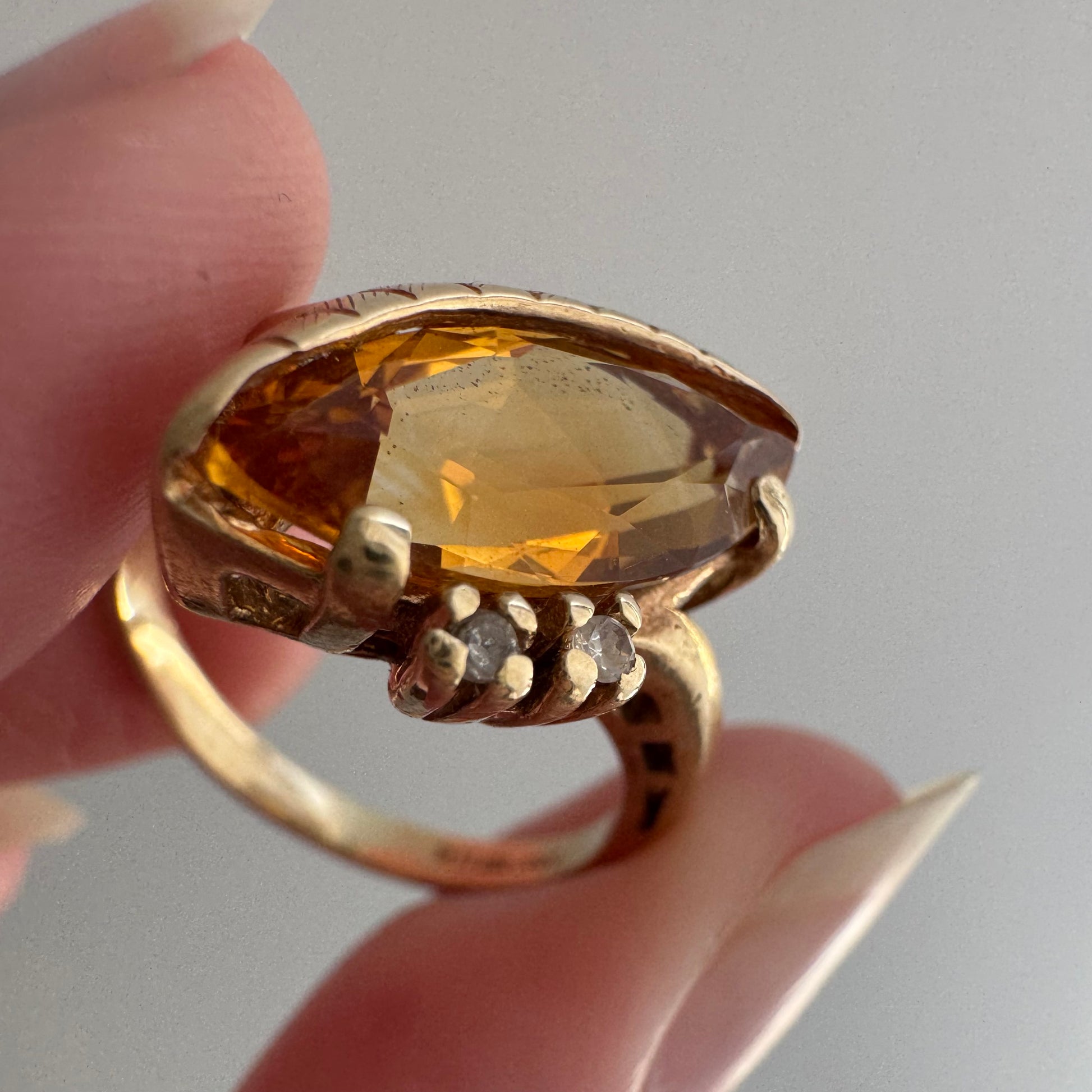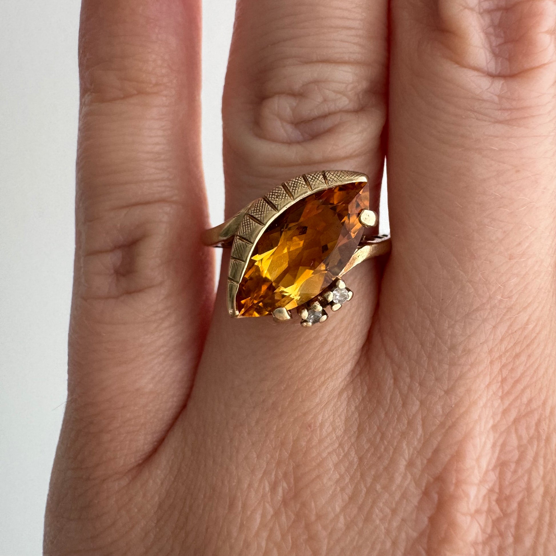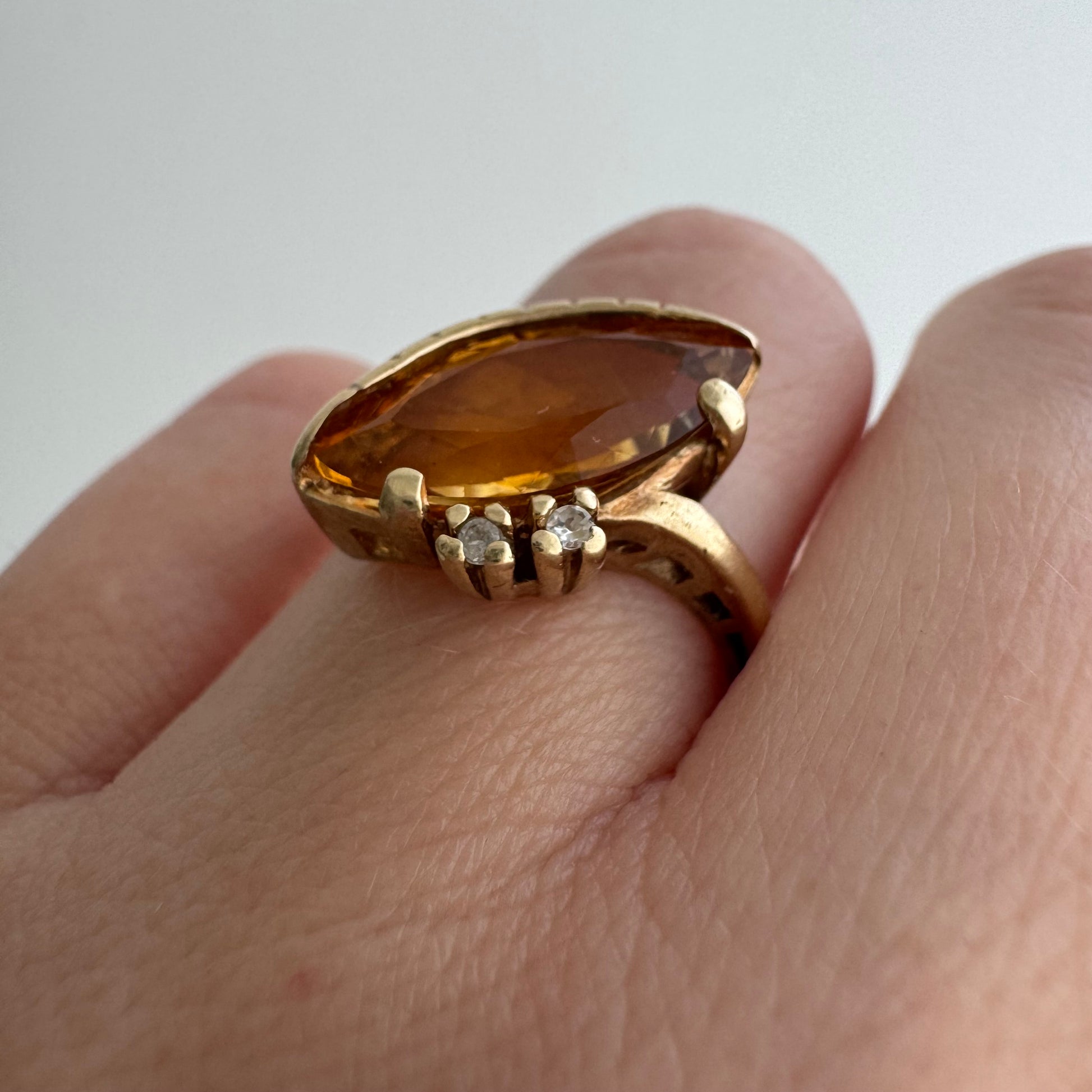 rehabbed V I N T A G E // subtle eye / late mid century crescent moon eye with citrine and topaz / size 5.5