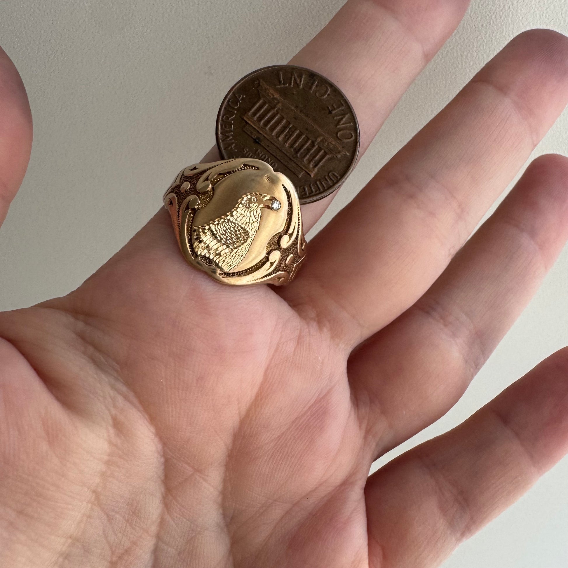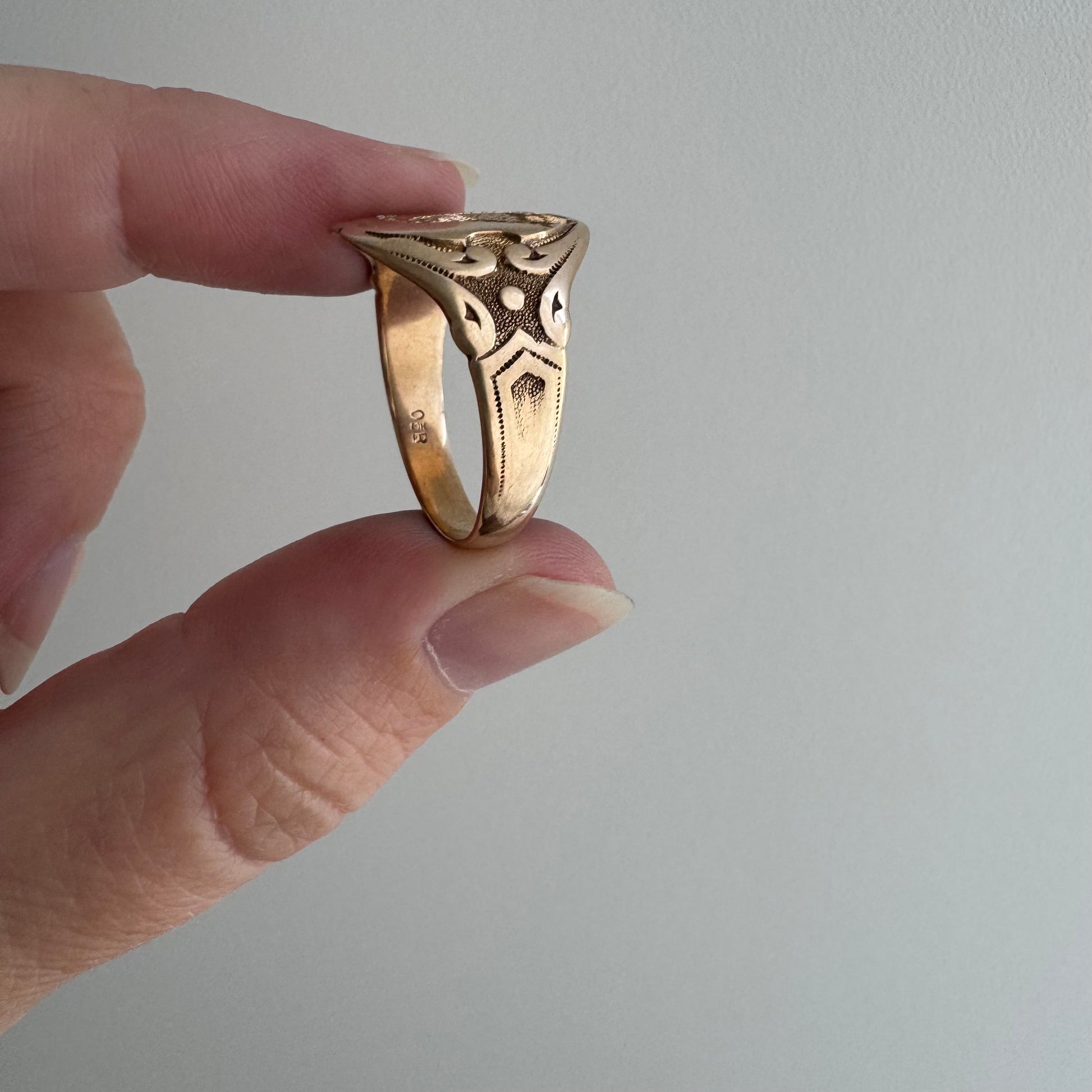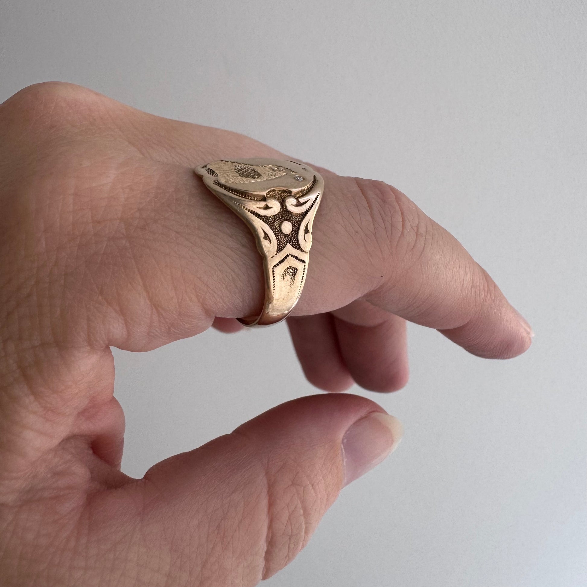 reimagined A N T I Q U E // treasure seeker / 10k rosy gold OB signet with new crow engraving / size 9.5