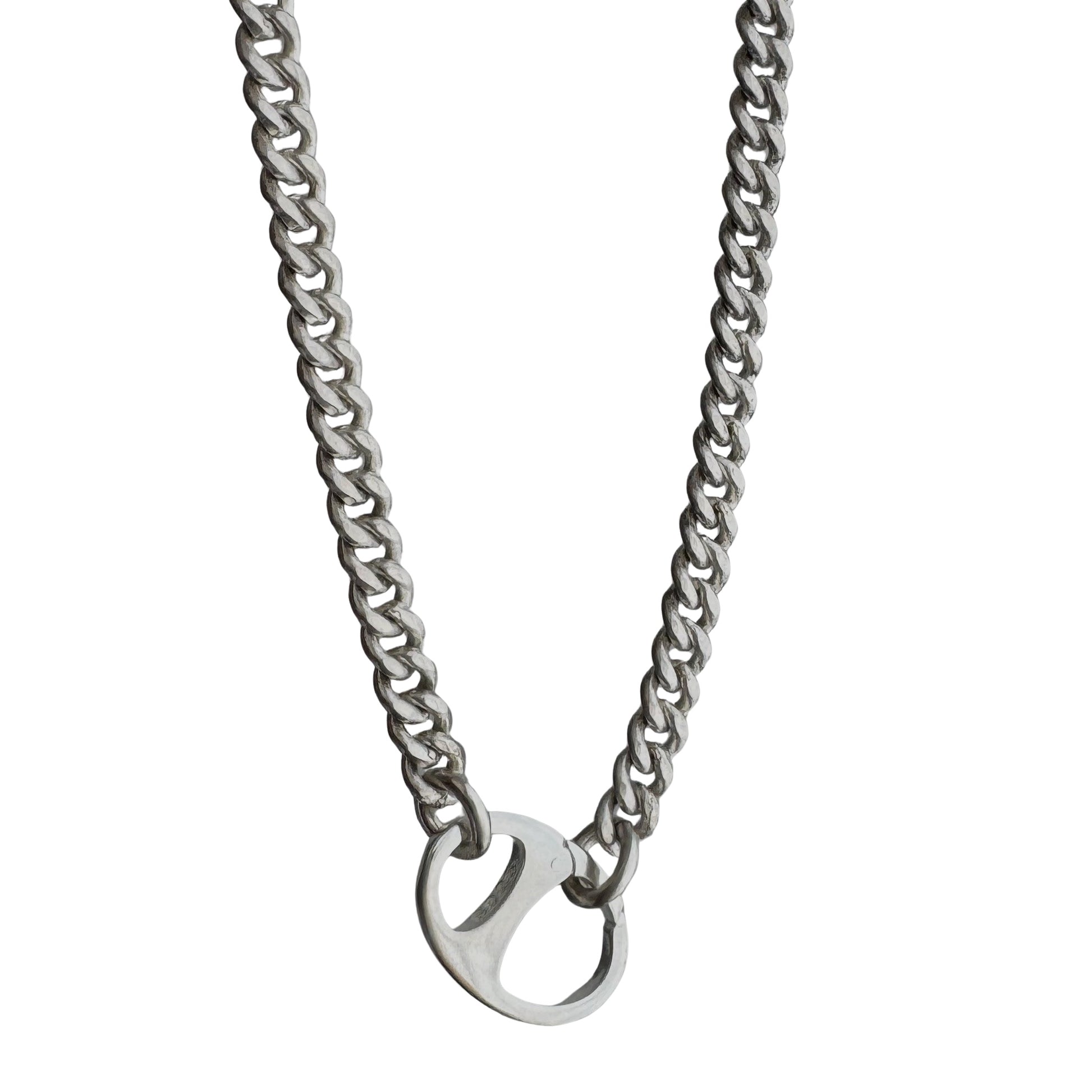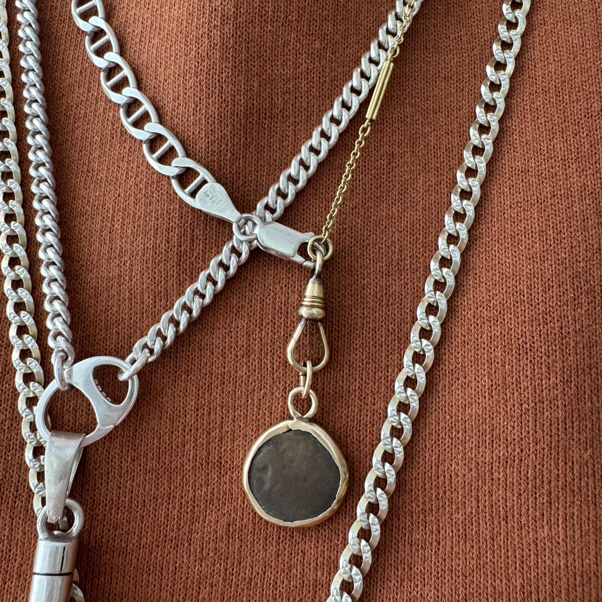 a classic, versatile slinky tight curb chain re-worked with a new connector clasp that can easily hold pendants or charms
