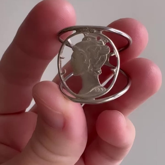 V I N T A G E // magnificent mercury / sterling silver and 800 silver mercury dime conversion ring / size 9.75