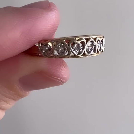 V I N T A G E // love any way / 10k yellow and white gold stacking band with tiny diamonds / size 7.75