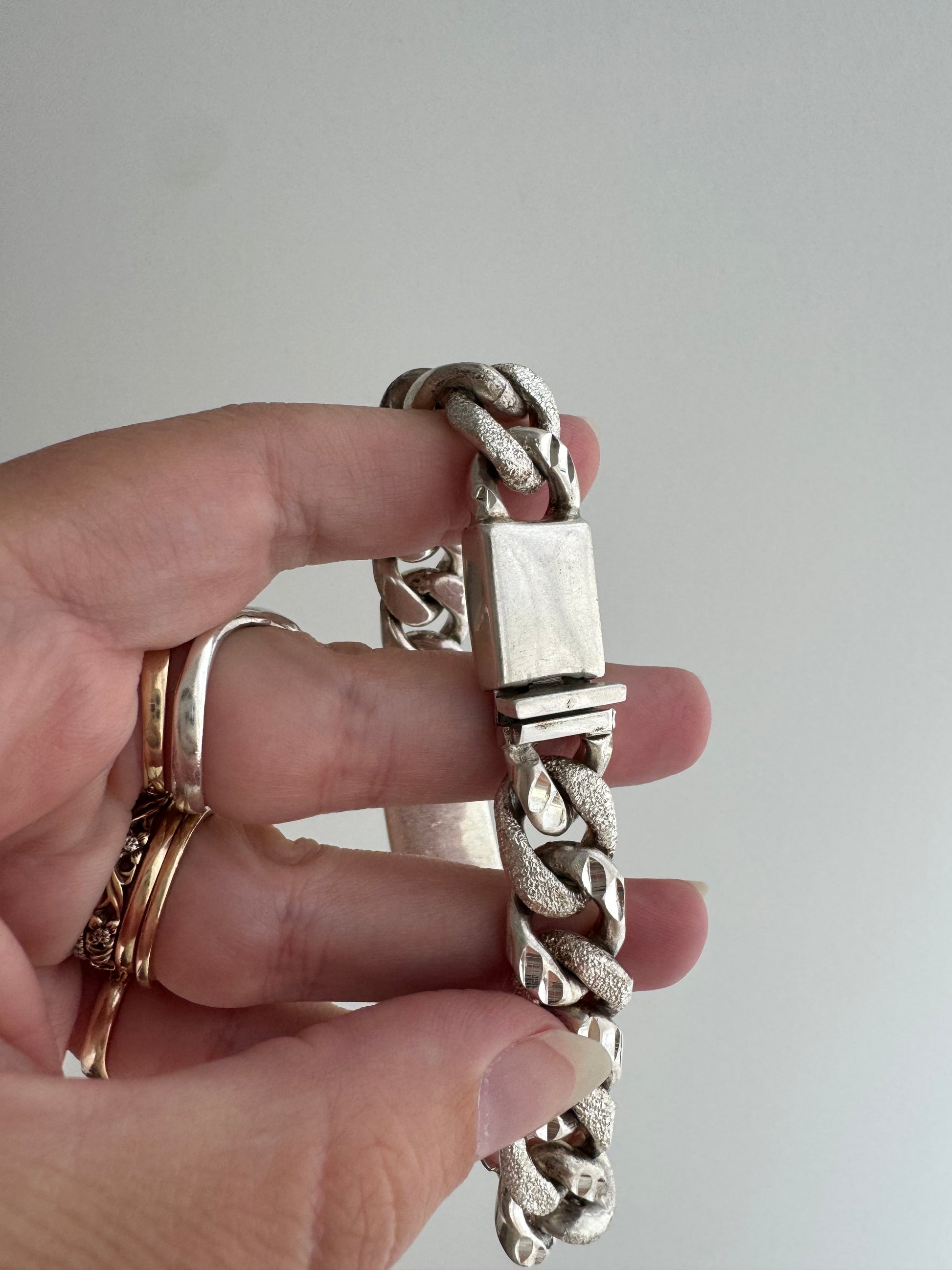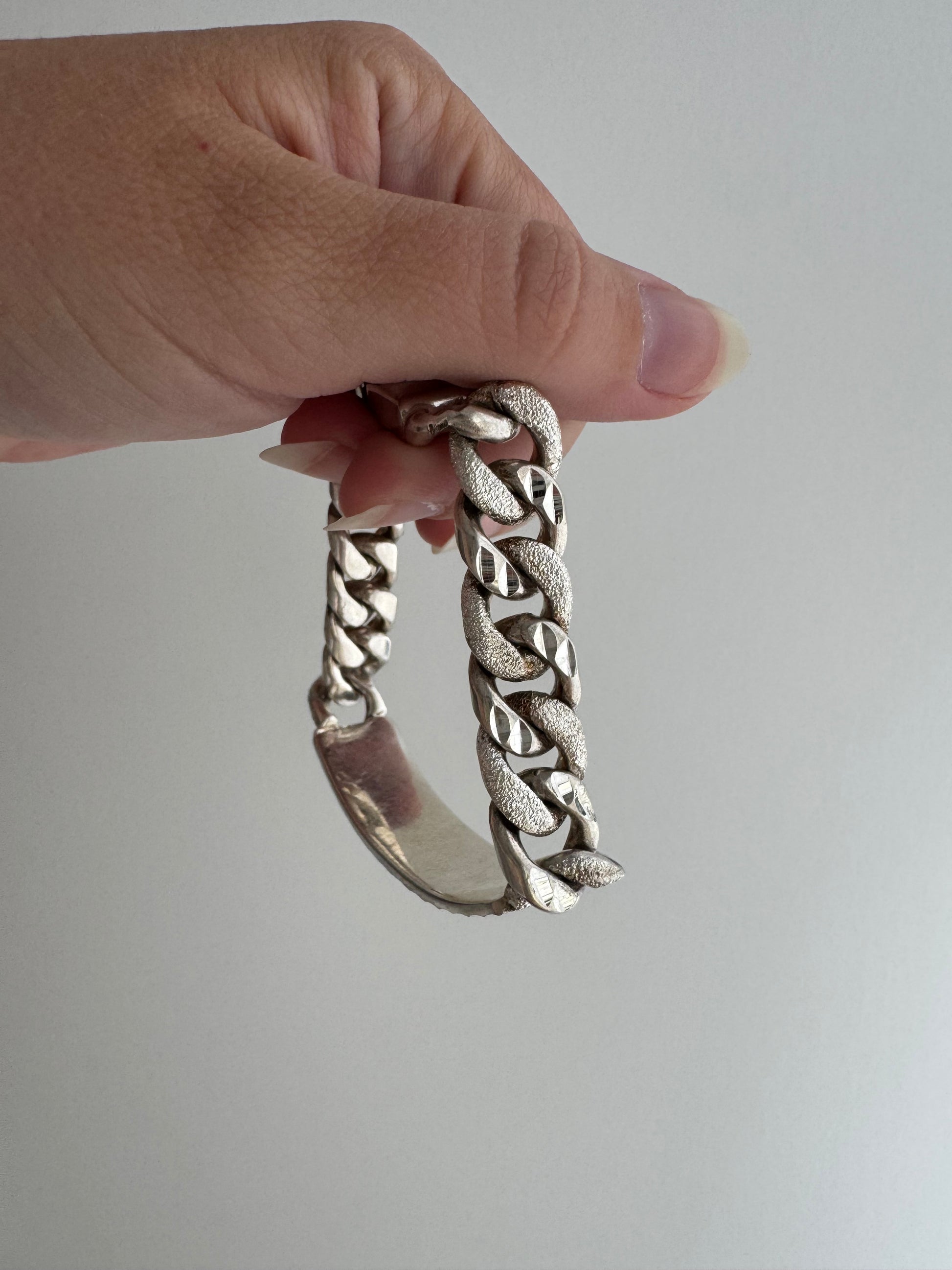 V I N T A G E // blank slate // sterling silver chunky heavy ID bracelet / 7.75", 63.5g