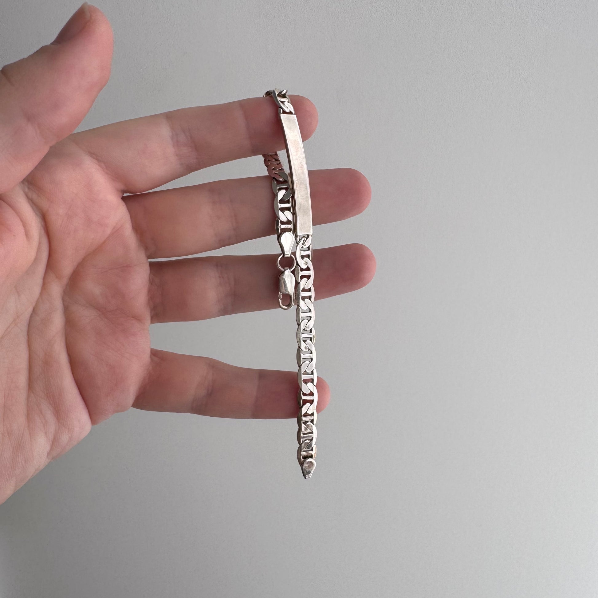 V I N T A G E // blank slate // sterling silver ID bracelet with flat anchor chain / 7", 8.1g