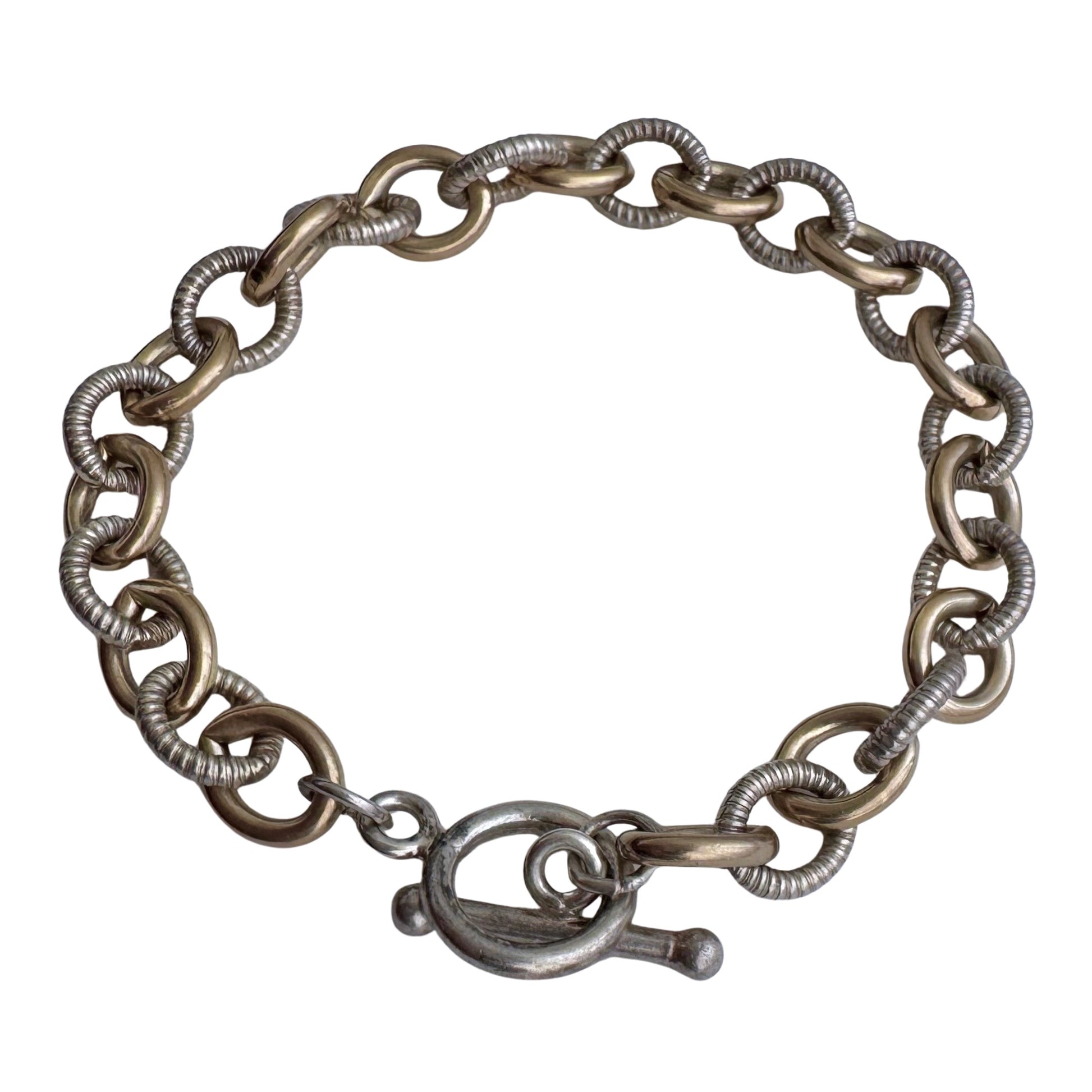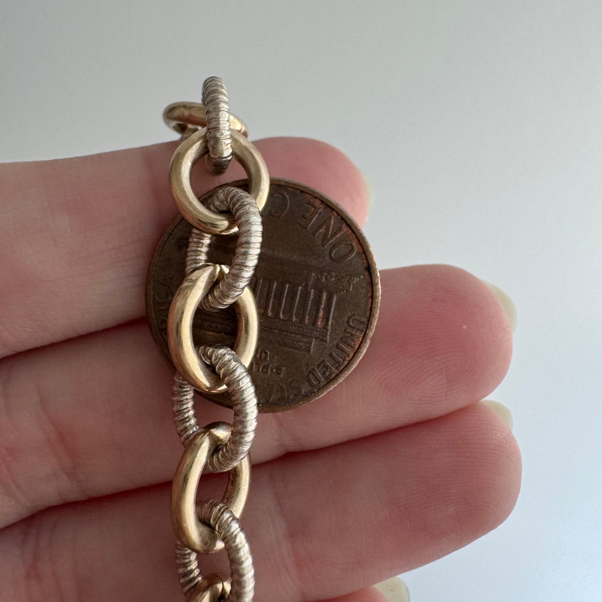 V I N T A G E // two tone cable / sterling silver cable chain link toggle bracelet / 7.25", 16.7g