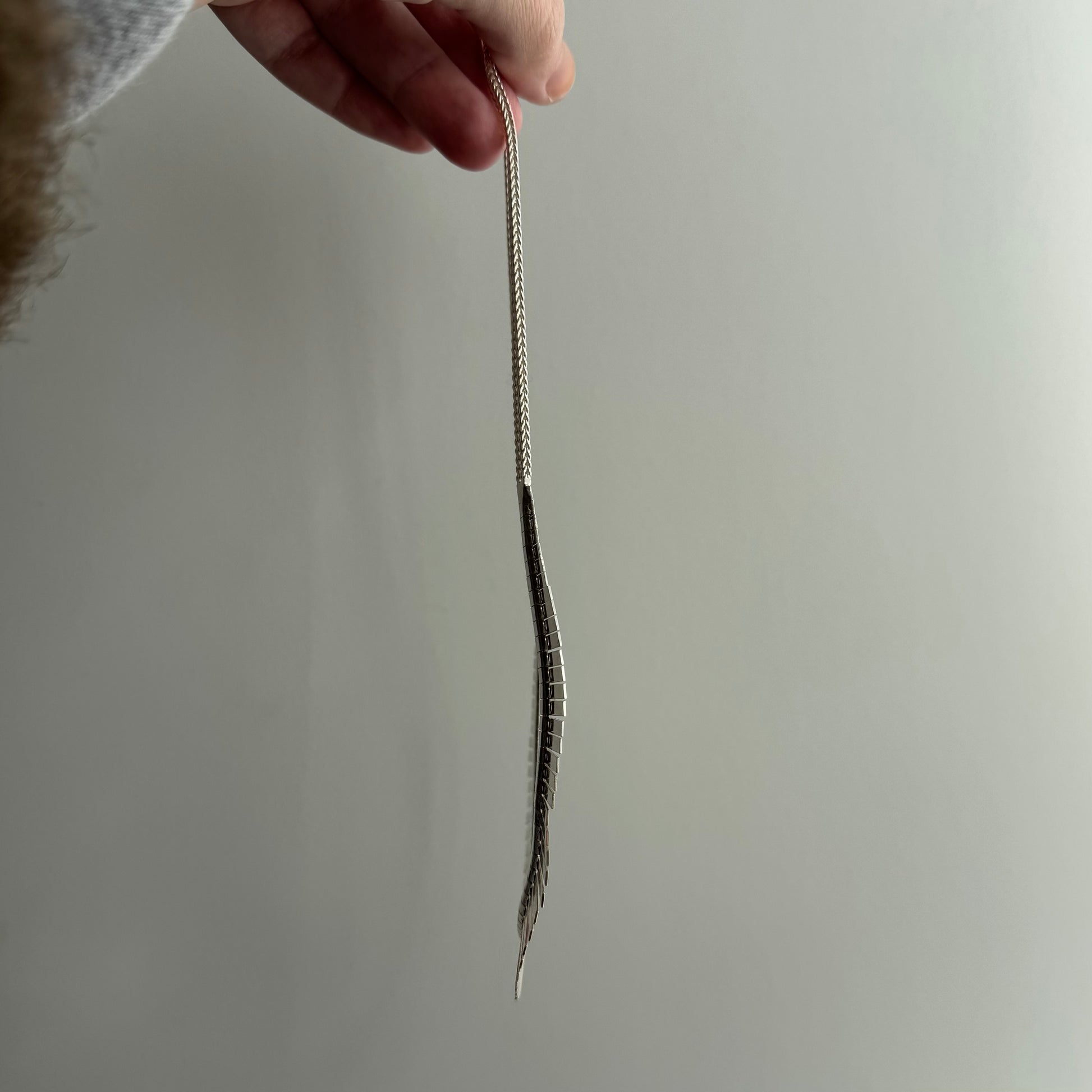 V I N T A G E // Cleopatra shine / sterling silver Cleopatra style paneled necklace with foxtail chain / just over 16", 23g