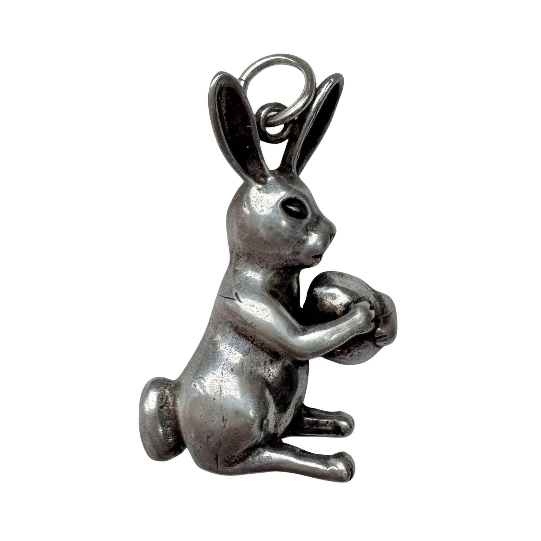 V I N T A G E // lucky rabbit / sterling silver seated bunny with an egg / a pendant