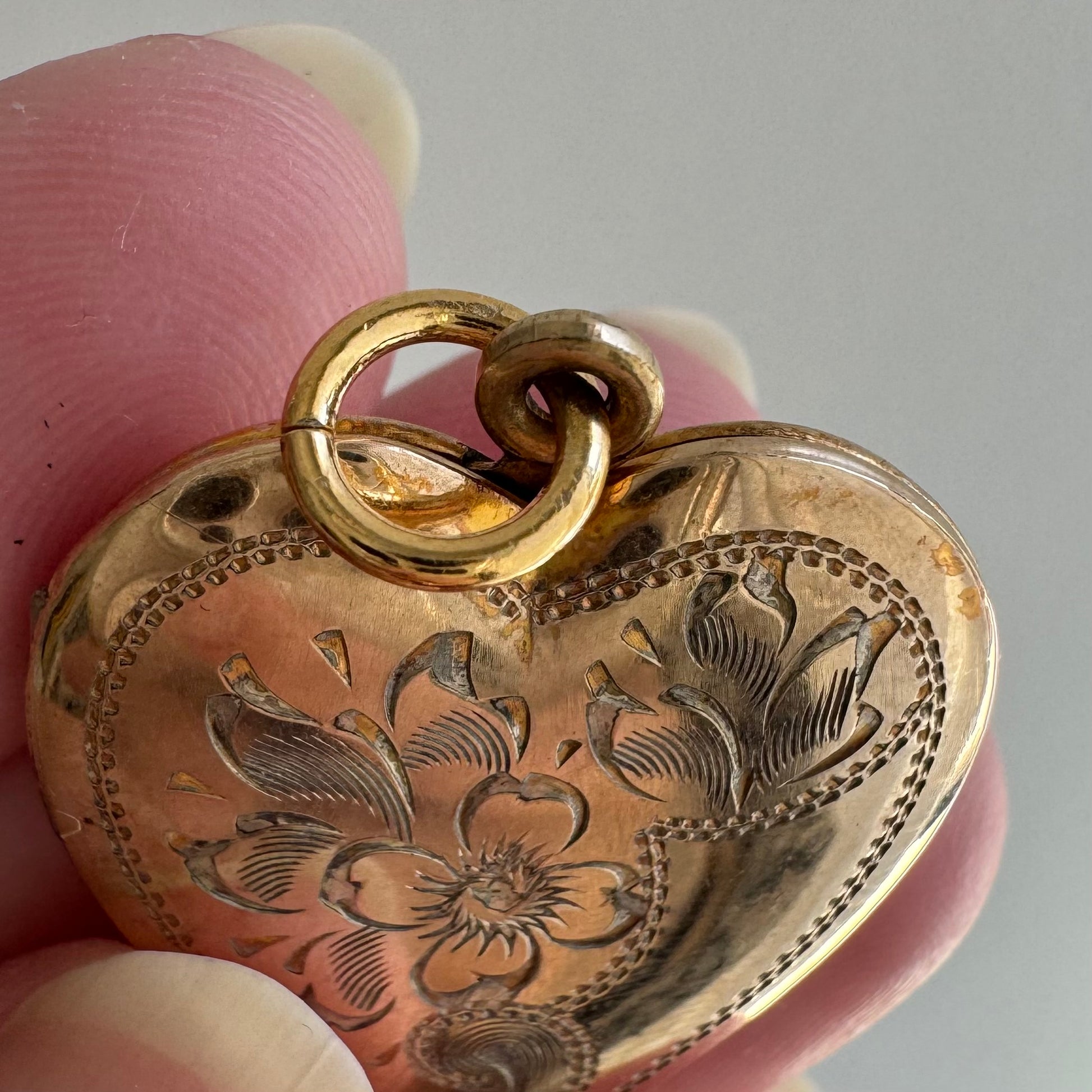 V I N T A G E // retro forget me not / 1940s 10k GF over sterling silver heart locket / a pendant