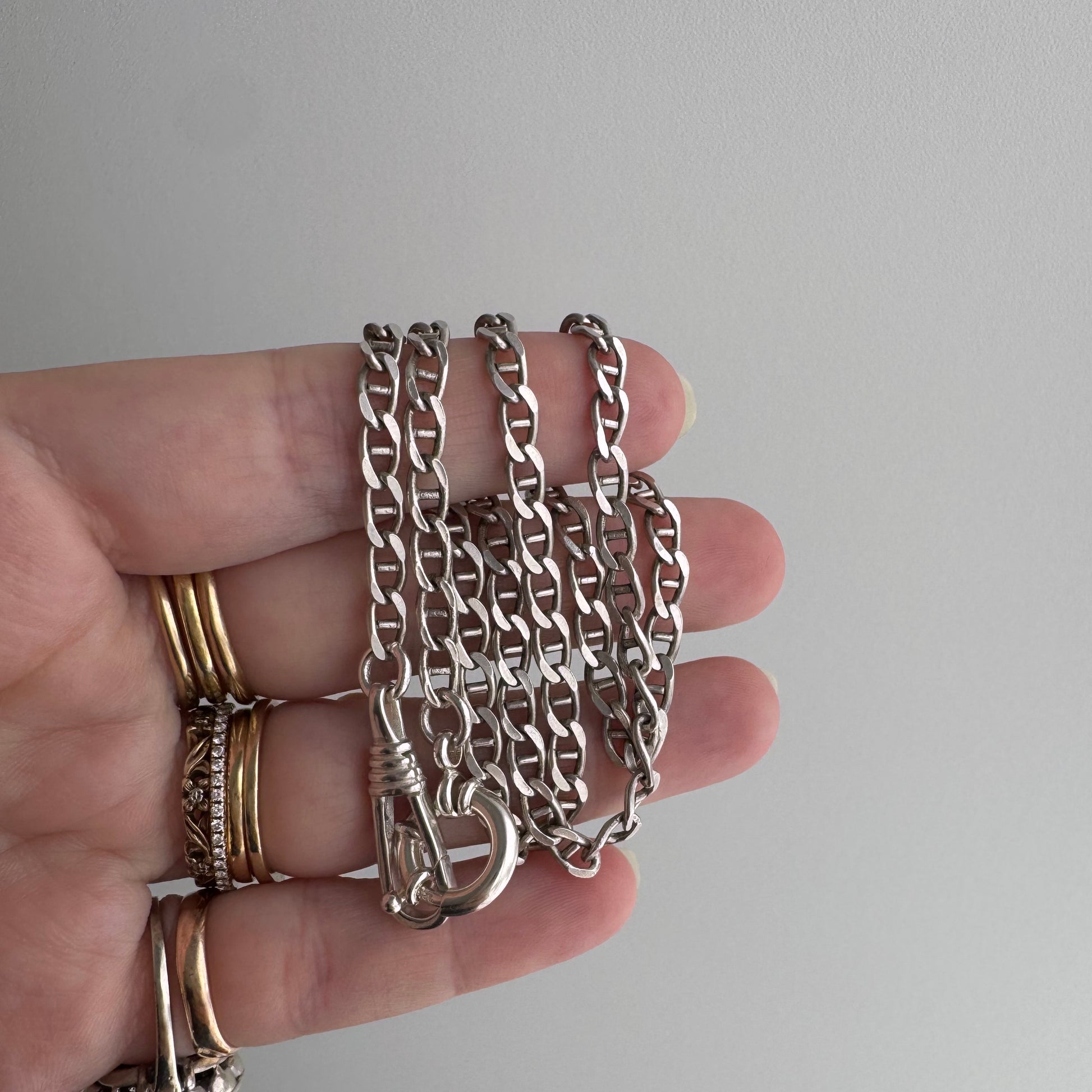 reimagined V I N T A G E // modern day watch chain / re-worked sterling flat mariner anchor link chain / 18.25", 13.4g