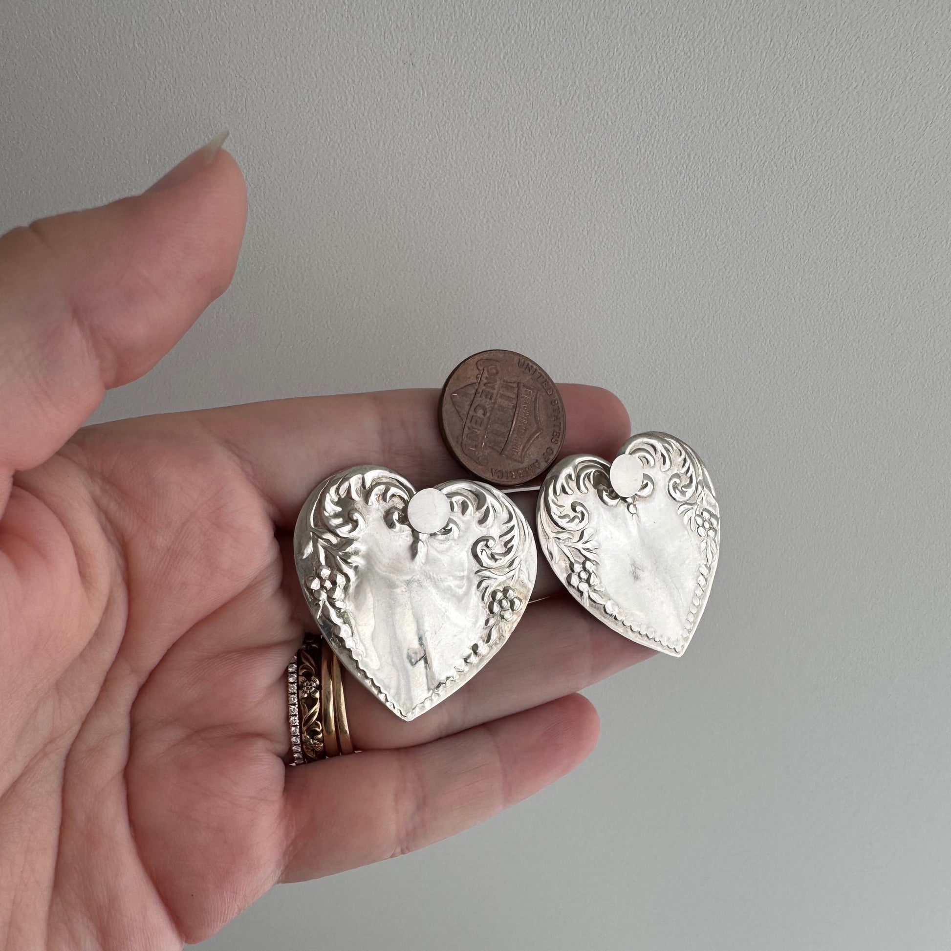 V I N T A G E // dynamic hearts / sterling silver repousse large and lightweight hearts / earring jackets