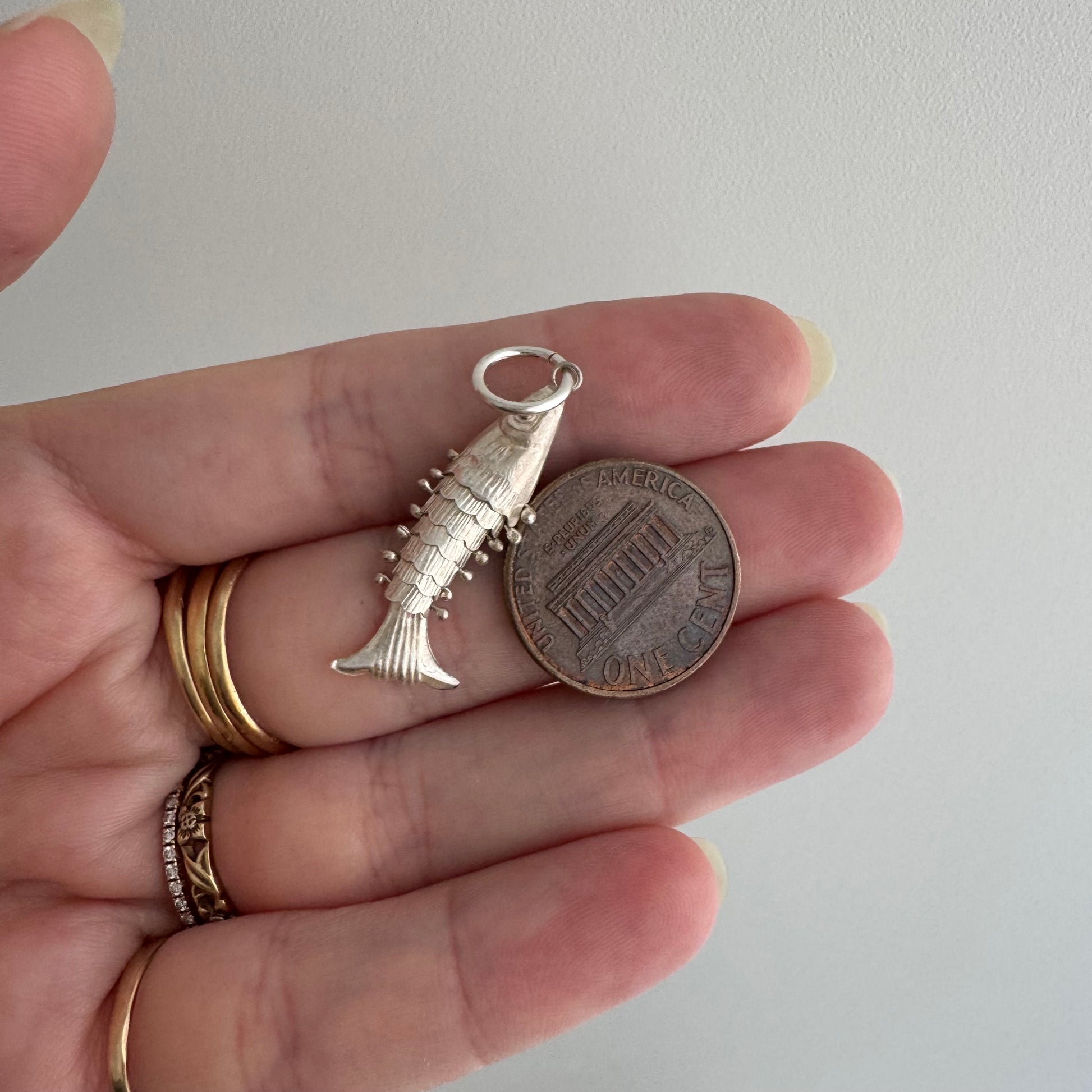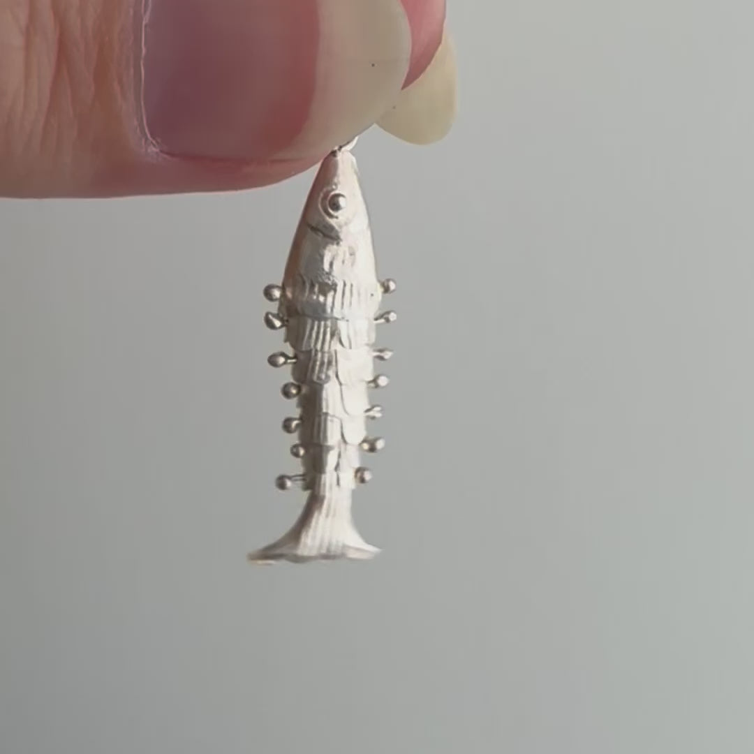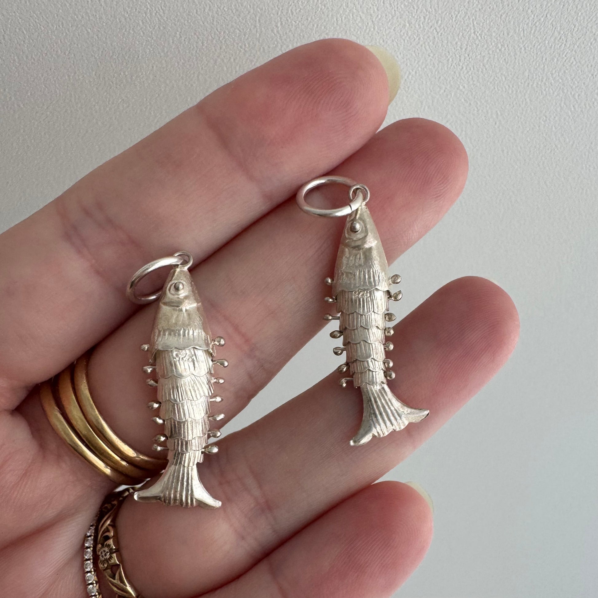 V I N T A G E // lucky catch / sterling silver articulated pair of wiggle fish pendants