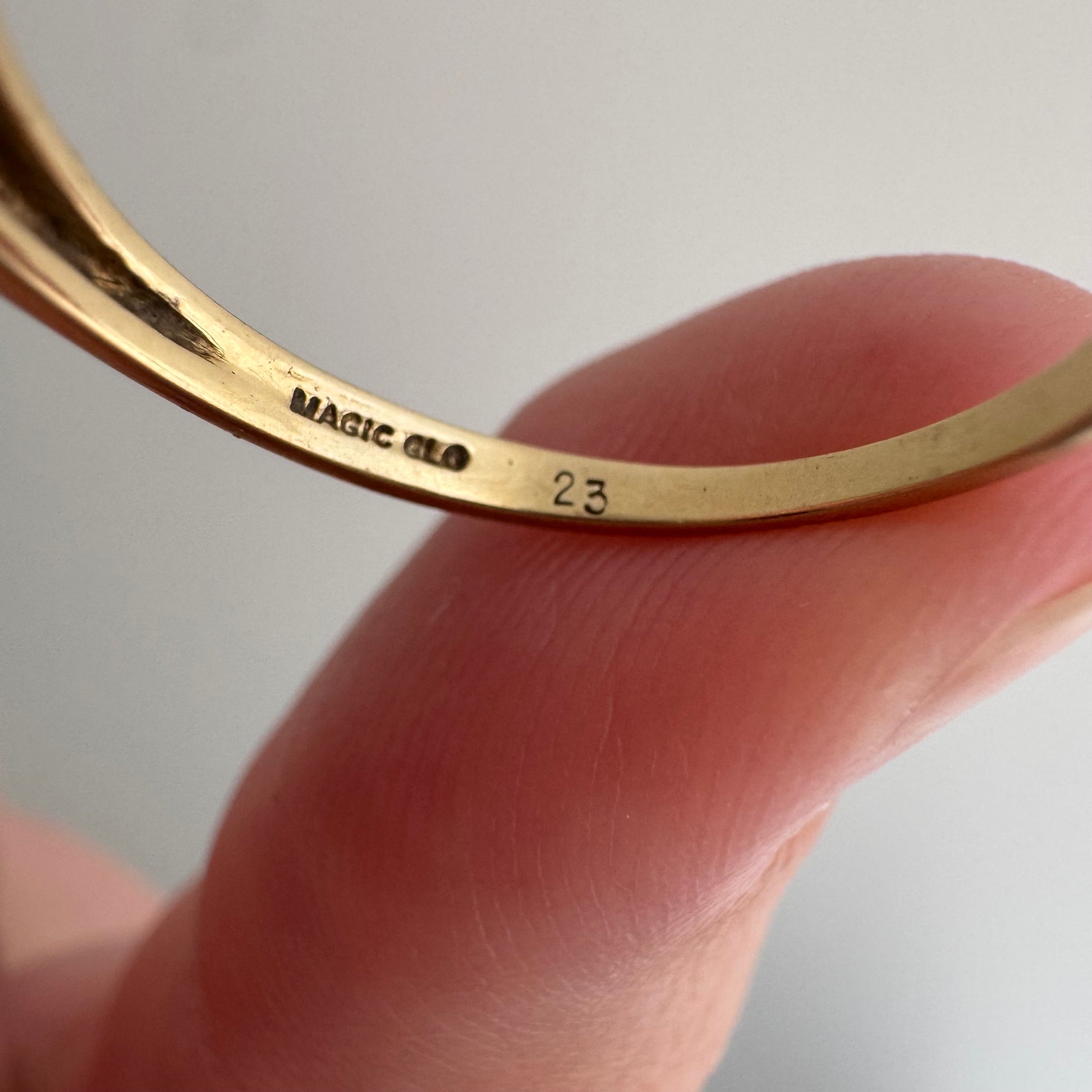 it's made by Magic Glo and additionally has the number 23 stamped inside the band. it's said that 23 is the number of chaotic magic.
