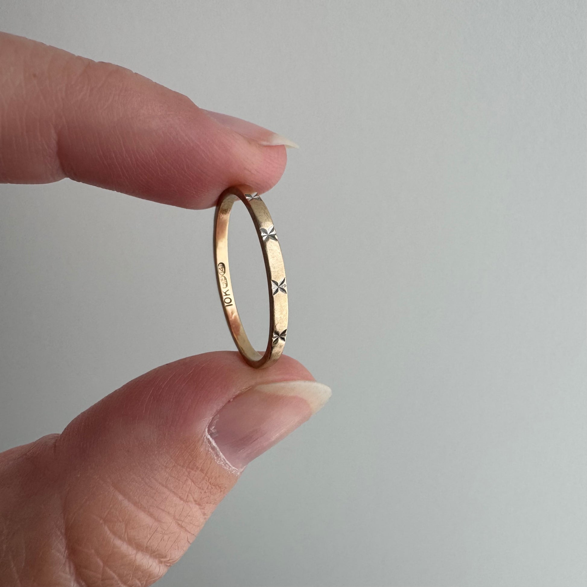 V I N T A G E // nine bursts / 10k yellow gold skinny pipe cut starburst band / size 6.75