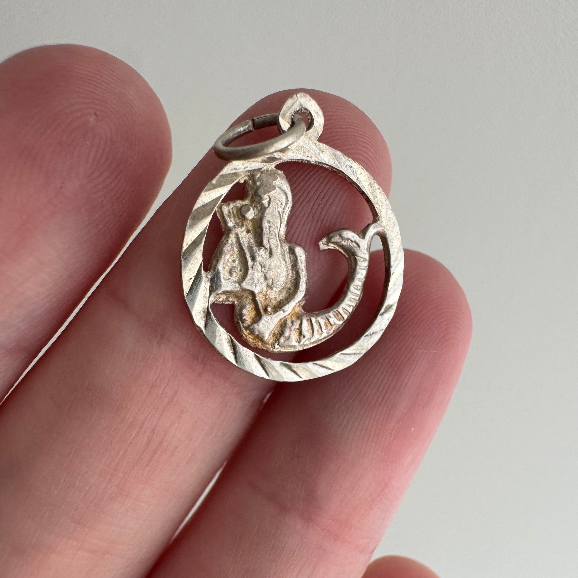 V I N T A G E // sea-based / sterling silver engine turned merman with staff / a pendant