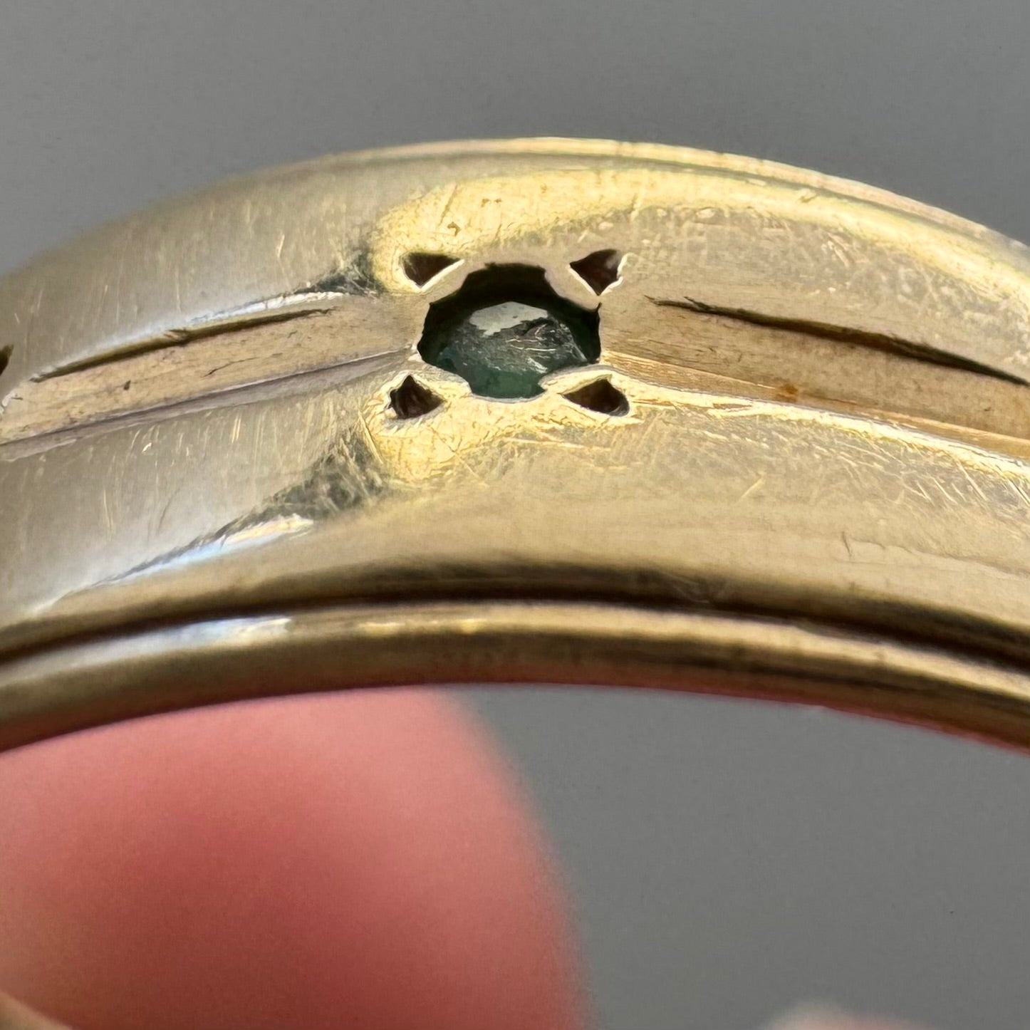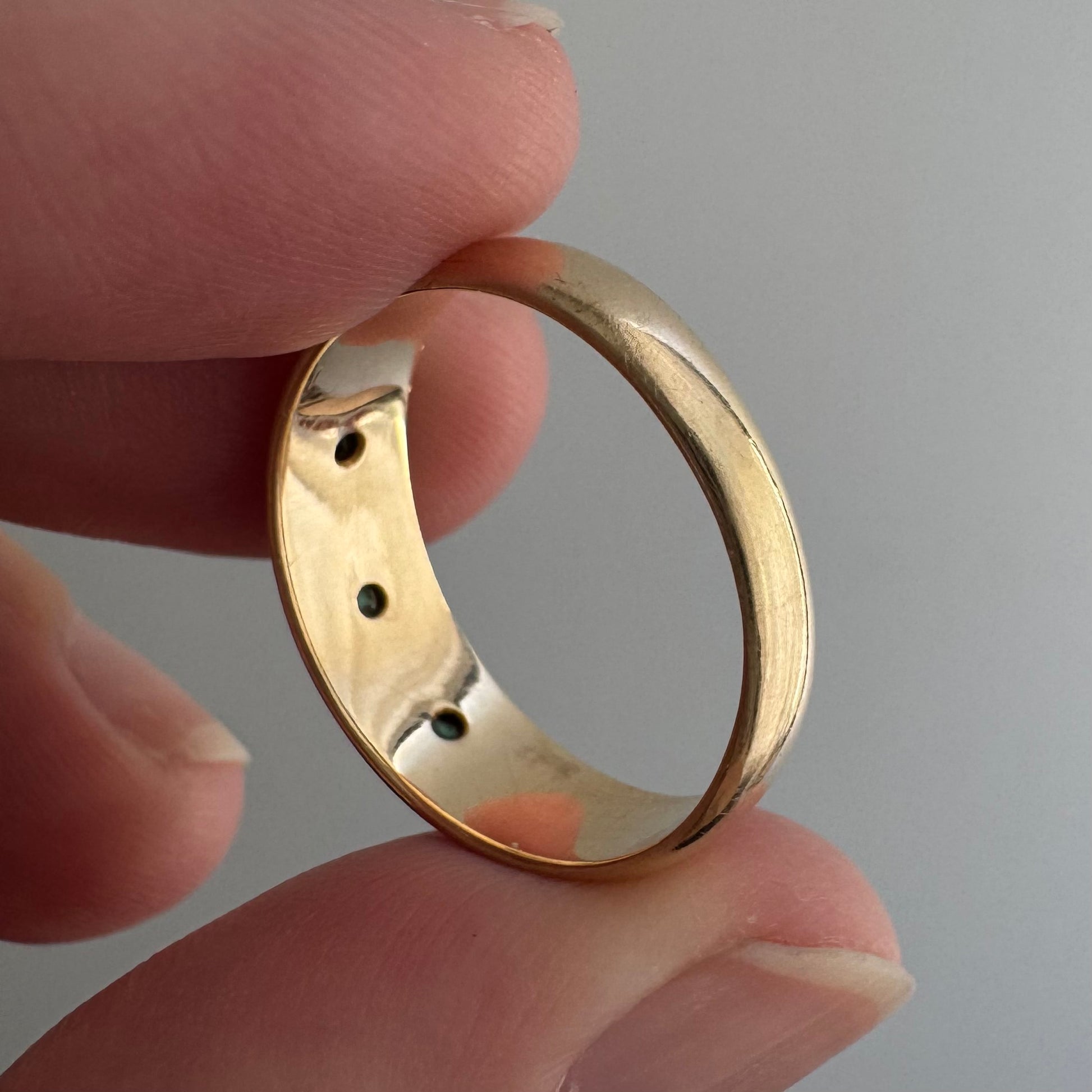 V I N T A G E // subtle stars / 14k and emerald trilogy half eternity tapered wide band / size ~7.25