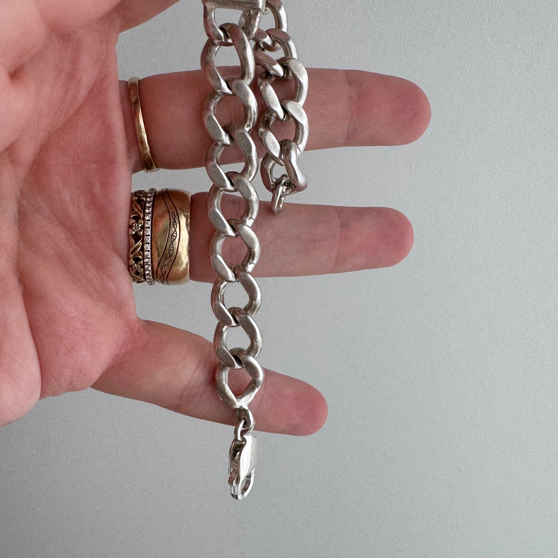 this is a chunky, hefty bracelet with a great feel on the wrist