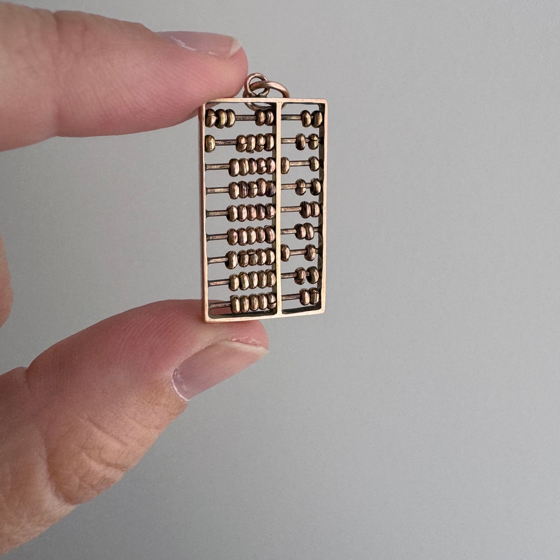 a gorgeous, solid gold abacus with beads that move! this is from the turn of the century, a true antique, and is much larger than many of its peers, with substantial weight for a mid-sized pendant