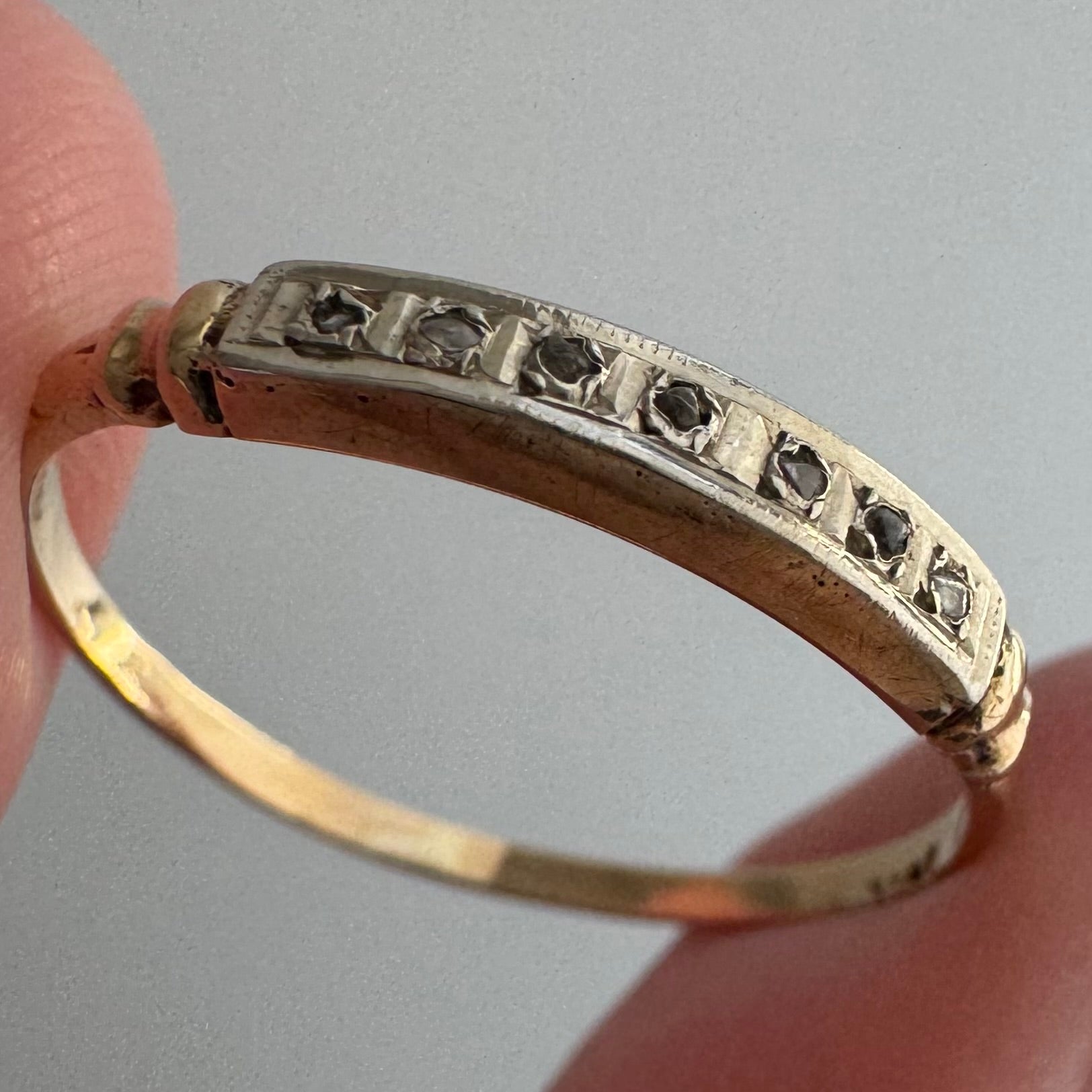 A N T I Q U E // diamonds in the rough / 10k bicolor commitment band with rough cut diamonds / size 6