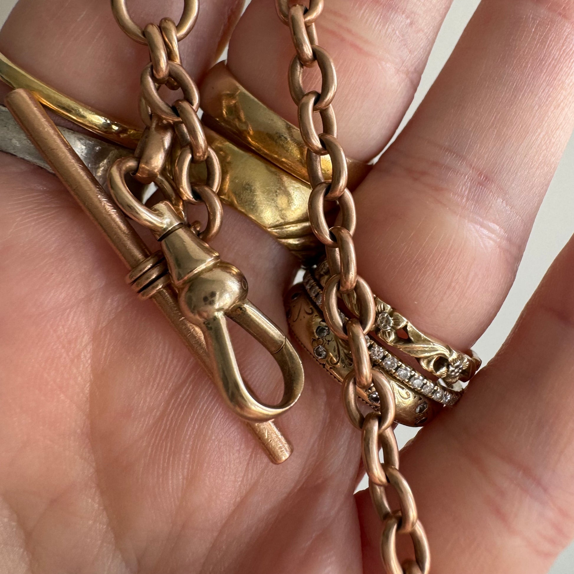 it's a truly old 14k watch chain from the US — a rare find, indeed. And, it comes with its original t-bar.