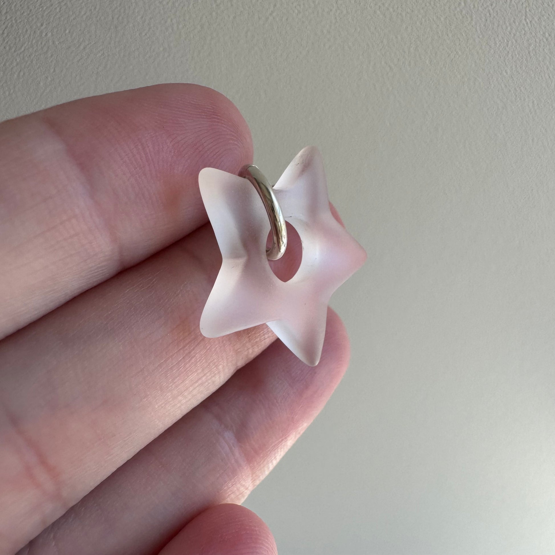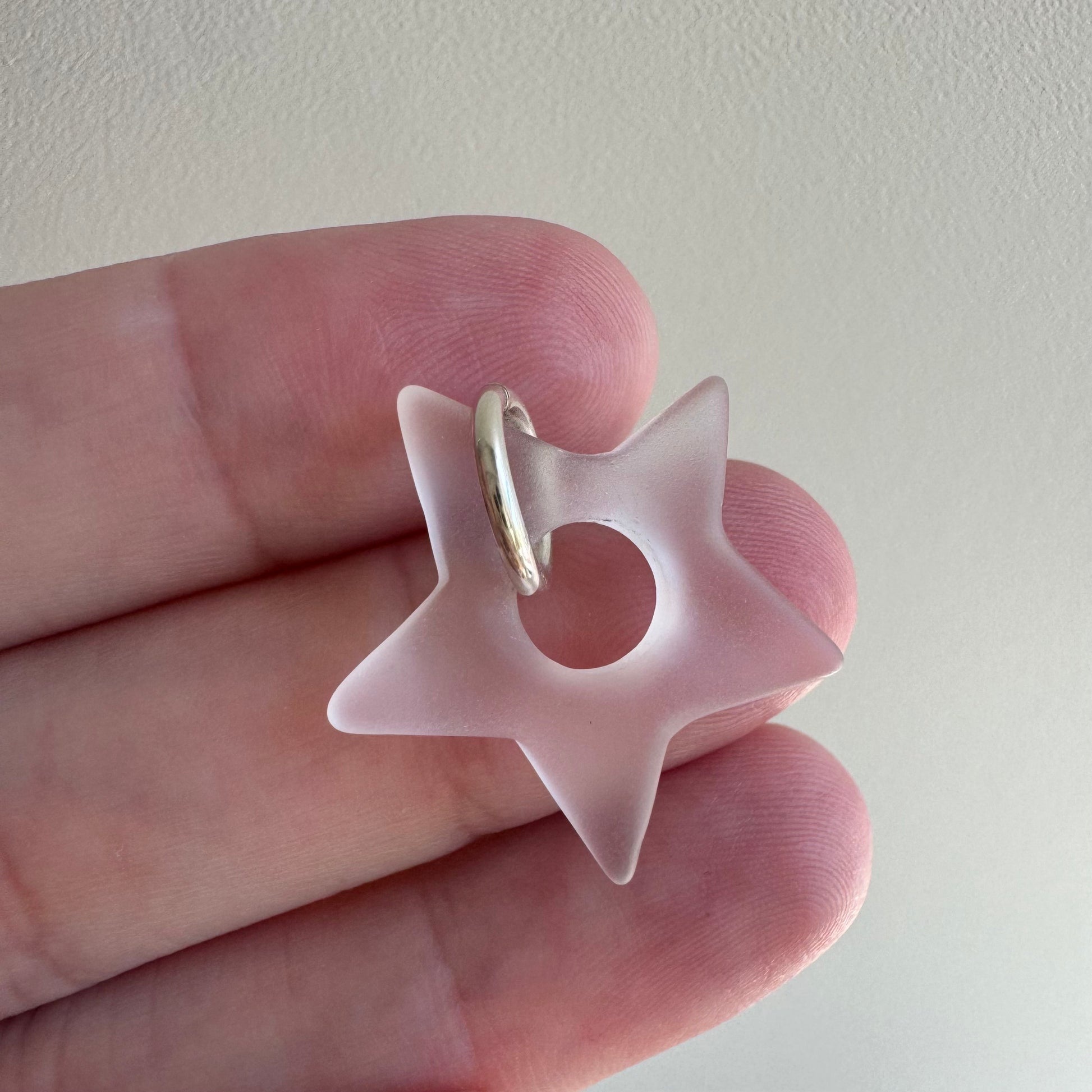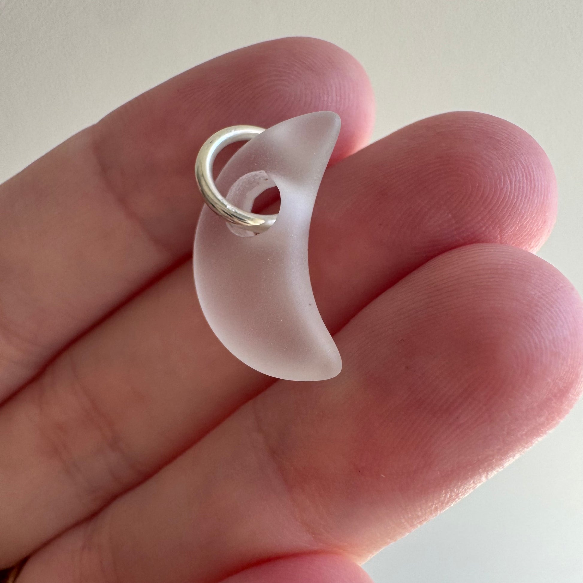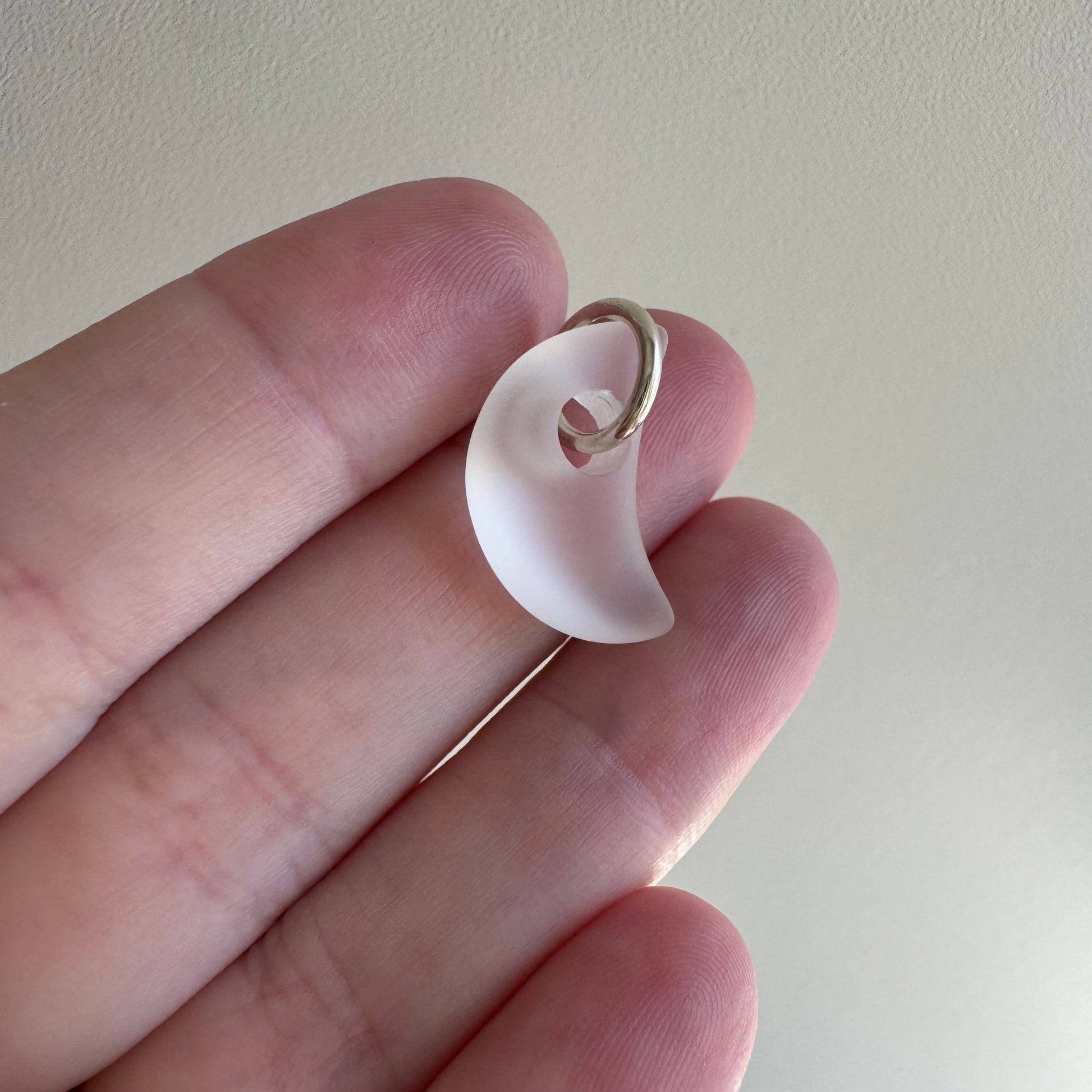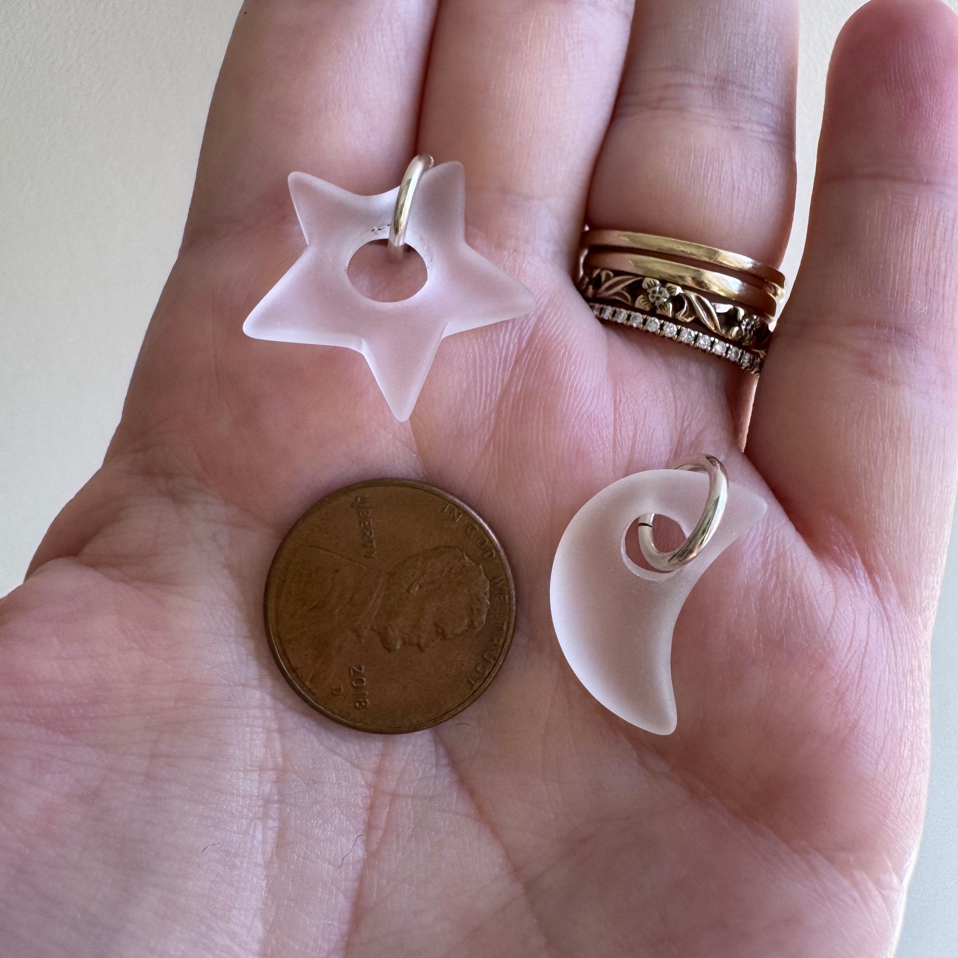 dead stock (vintage, but never used) rock crystal donut beads in moon and star shapes, but they're quite big, so they hang a little funny if they're worn on a chain without a bail. new sterling silver jump ring bails have been added