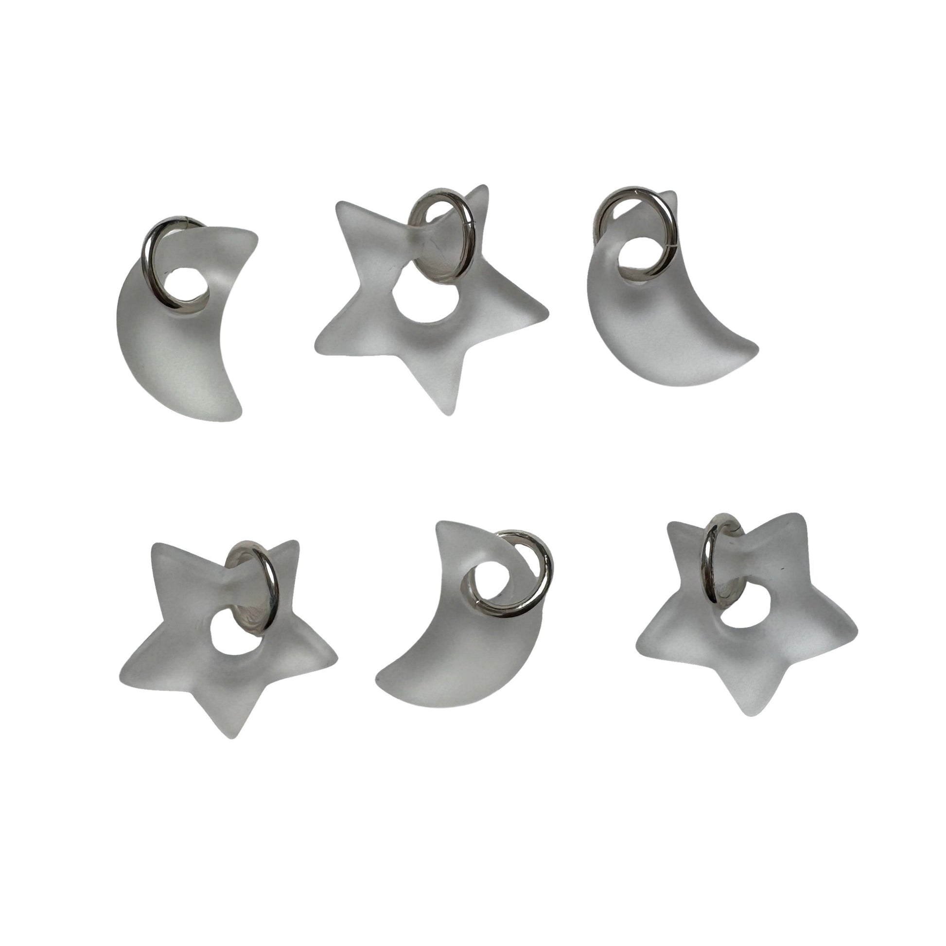 at the time of listing there are three available stars and three available moons. these were hand cut, drilled, and finished, so no two are exactly alike, just like you'd expect from stars and moons in galaxies near and far