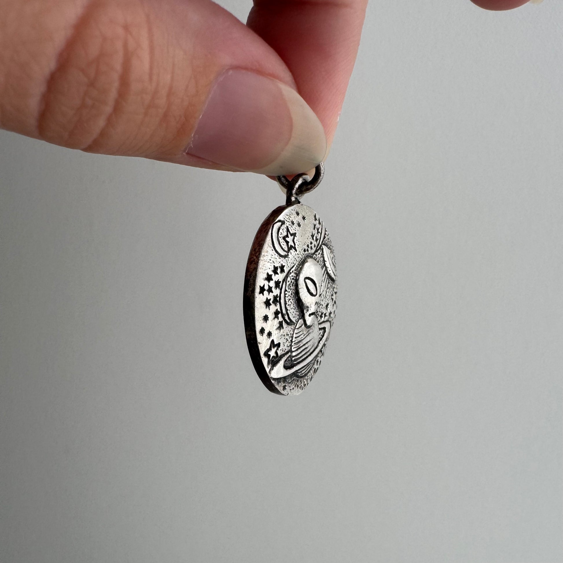 need a little wearable perspective about the vastness of the universe, its many moons, stars, and friends most of us haven't met yet? this could be it! it's hefty and detailed and medal-like, coin-like, and has a wonderful presence.