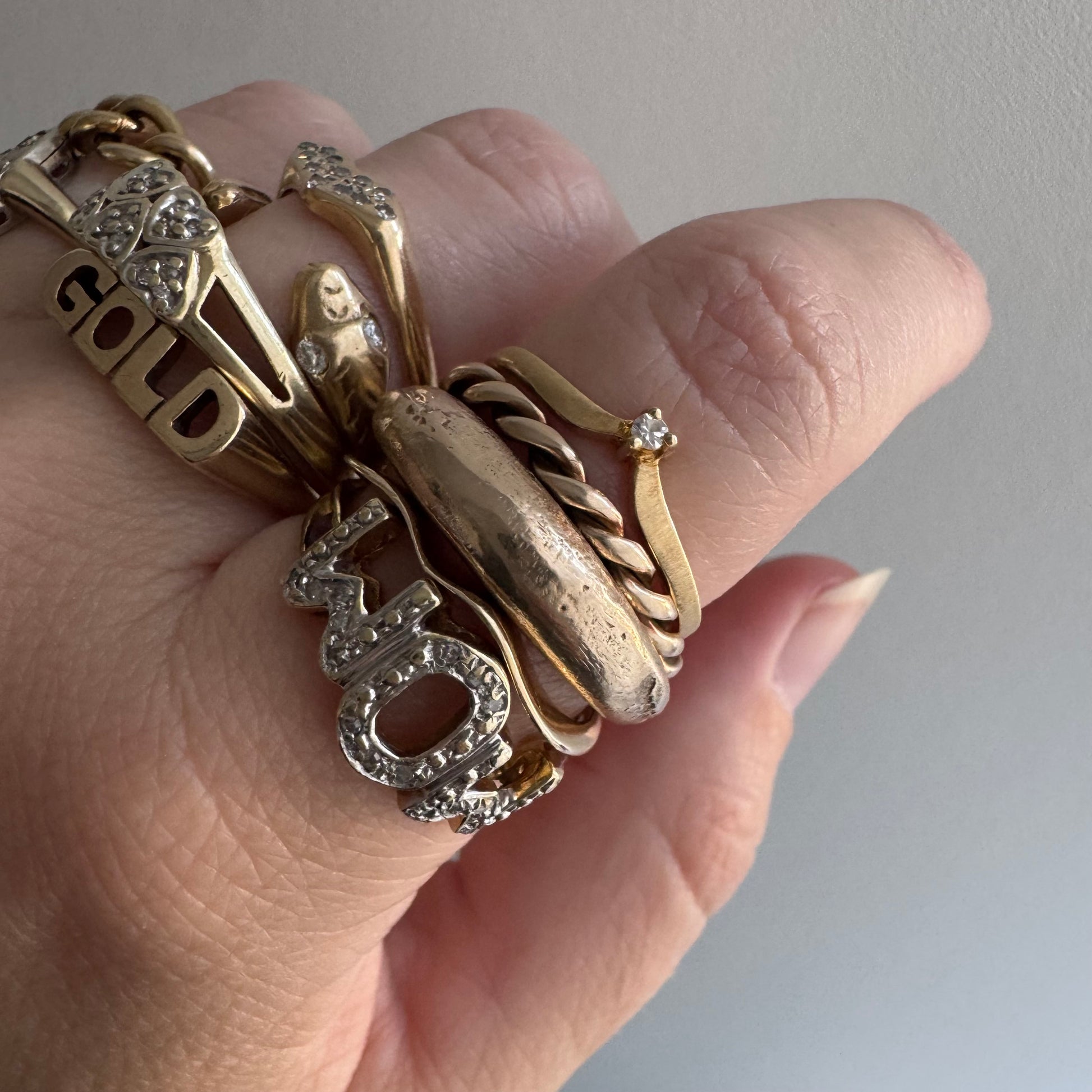 E S T A T E // helpful stacker / 14k Tru Blu chevron curved diamond solitaire stacking band / size 6.5