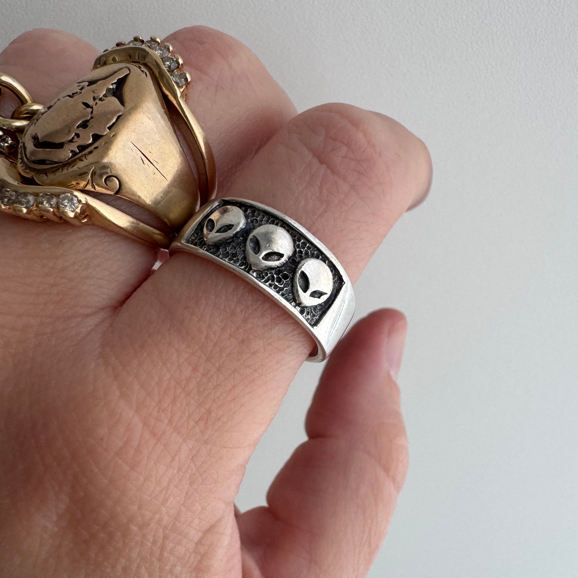 estate new old stock (never sold or worn) 1990s style alien head wide tapered bands