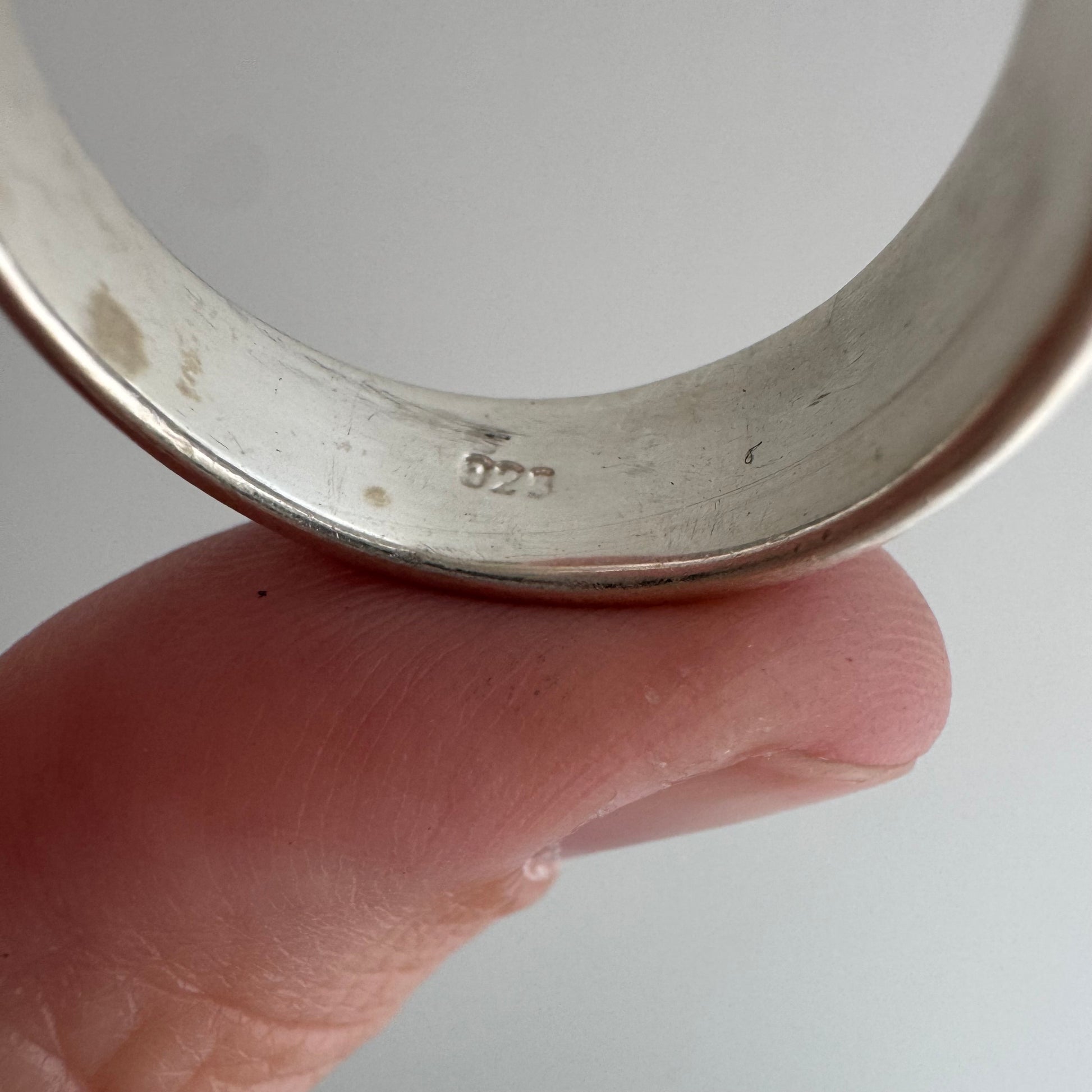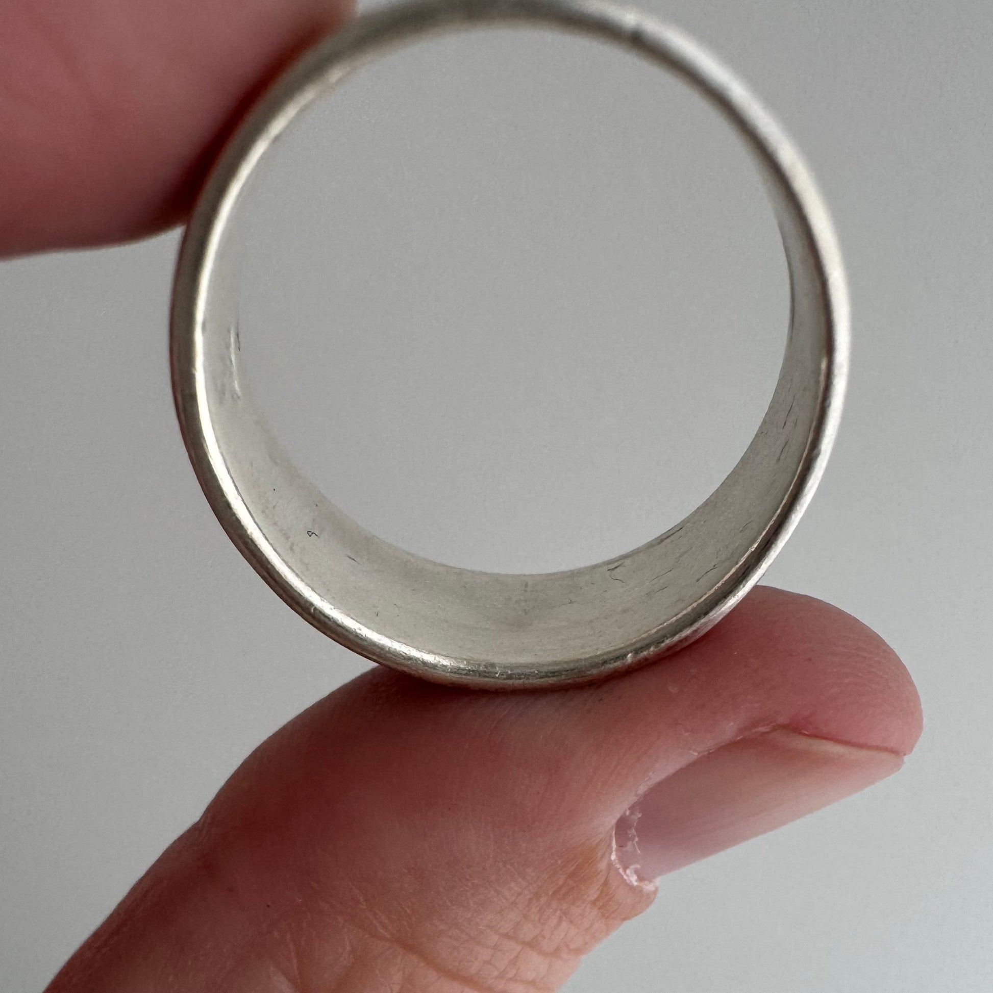 this is a new old stock item and will show surface scratches, dents, dings, dulling, wear, patina, and signs of having been worn and loved. most bands have noticeable sizing seams. size 9 seams to have no seam, below size 9 has a single sizing seam from being sized down, over size 9 has two sizing seams from being sized up.