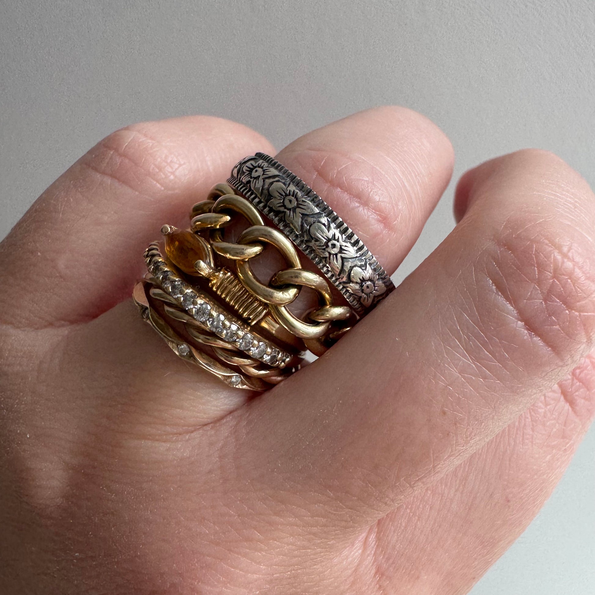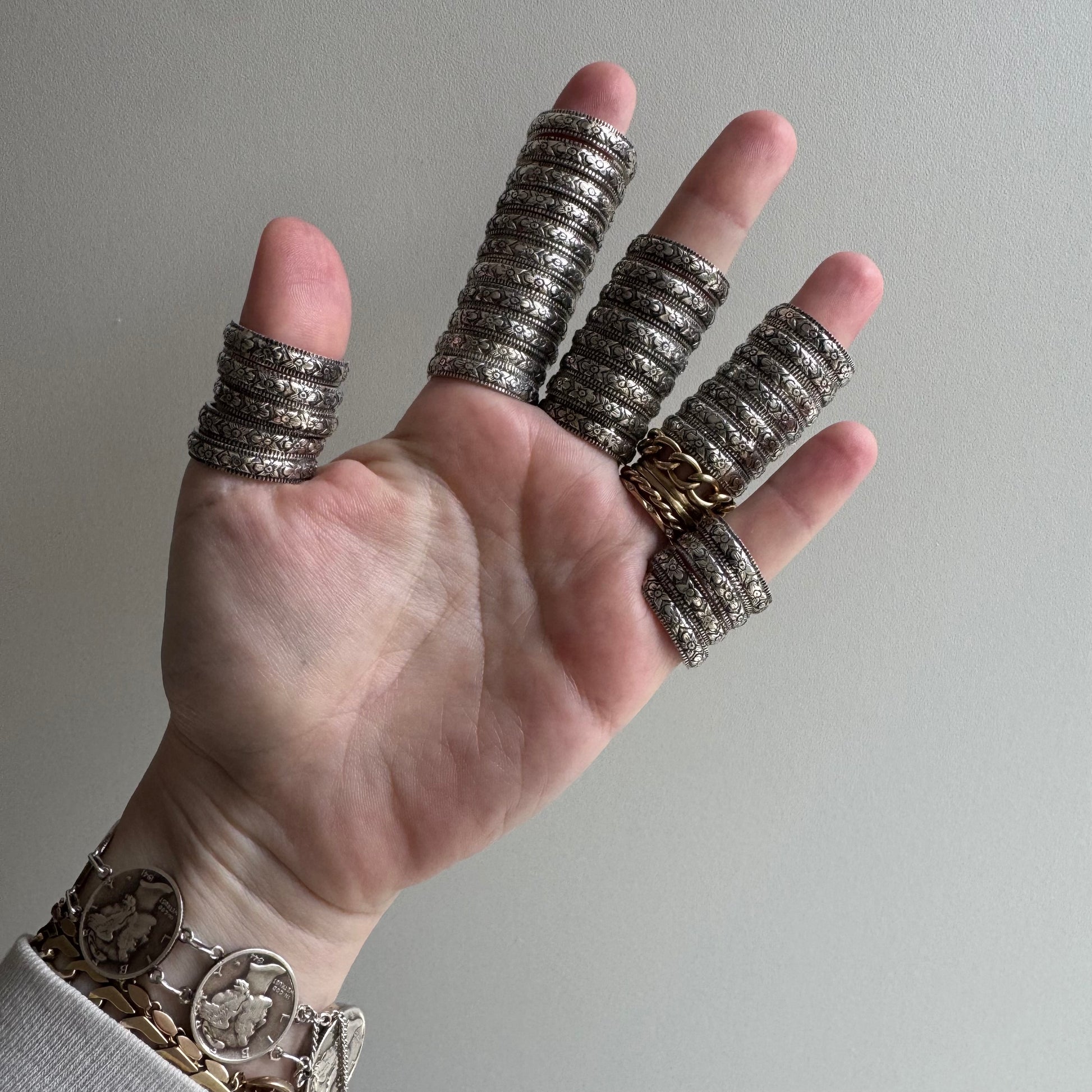 E S T A T E // new old stock bands / sterling silver art nouveau style floral patterned eternity bands
