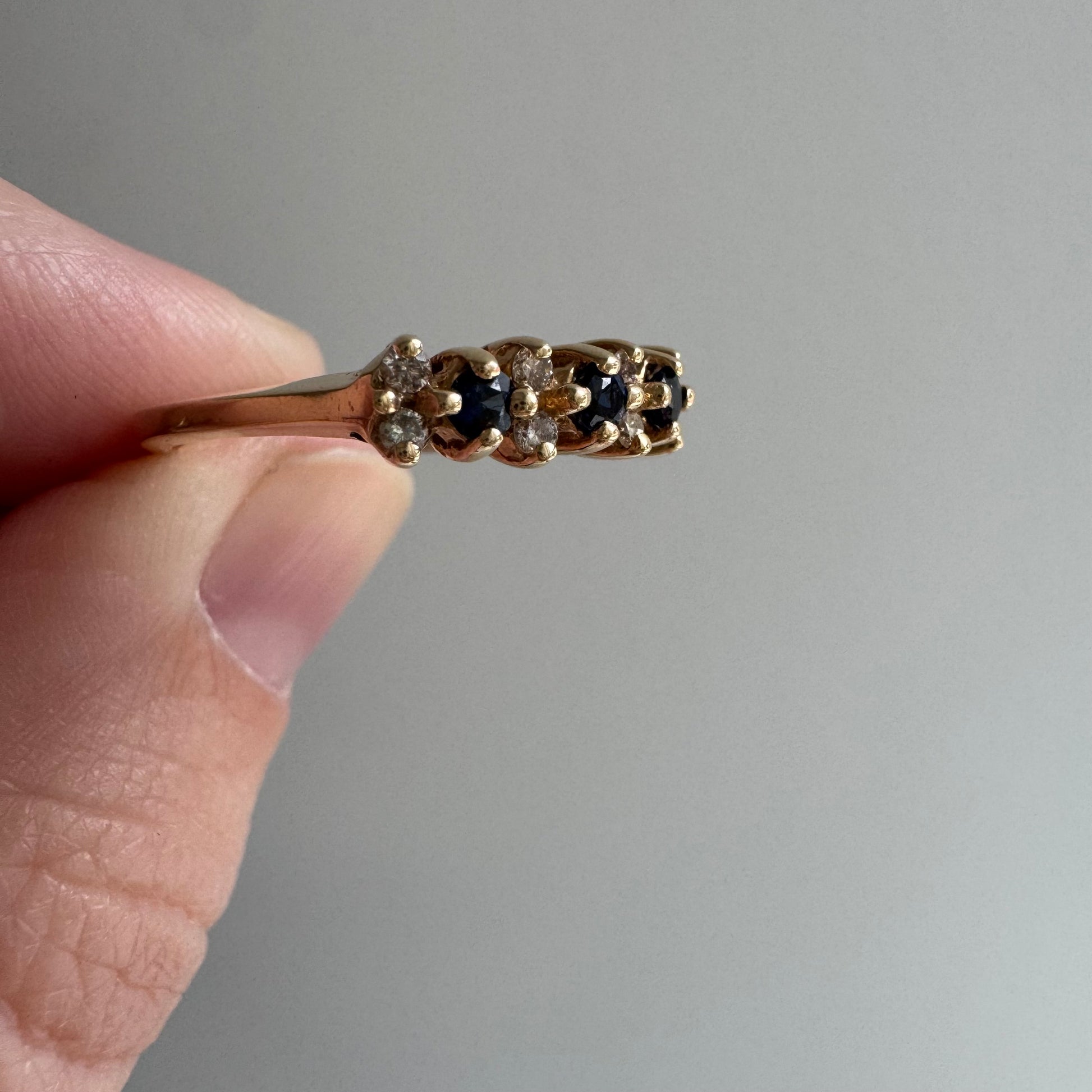 E S T A T E // sapphire timeline / 14k cluster band with sapphires and diamonds / size 6.75
