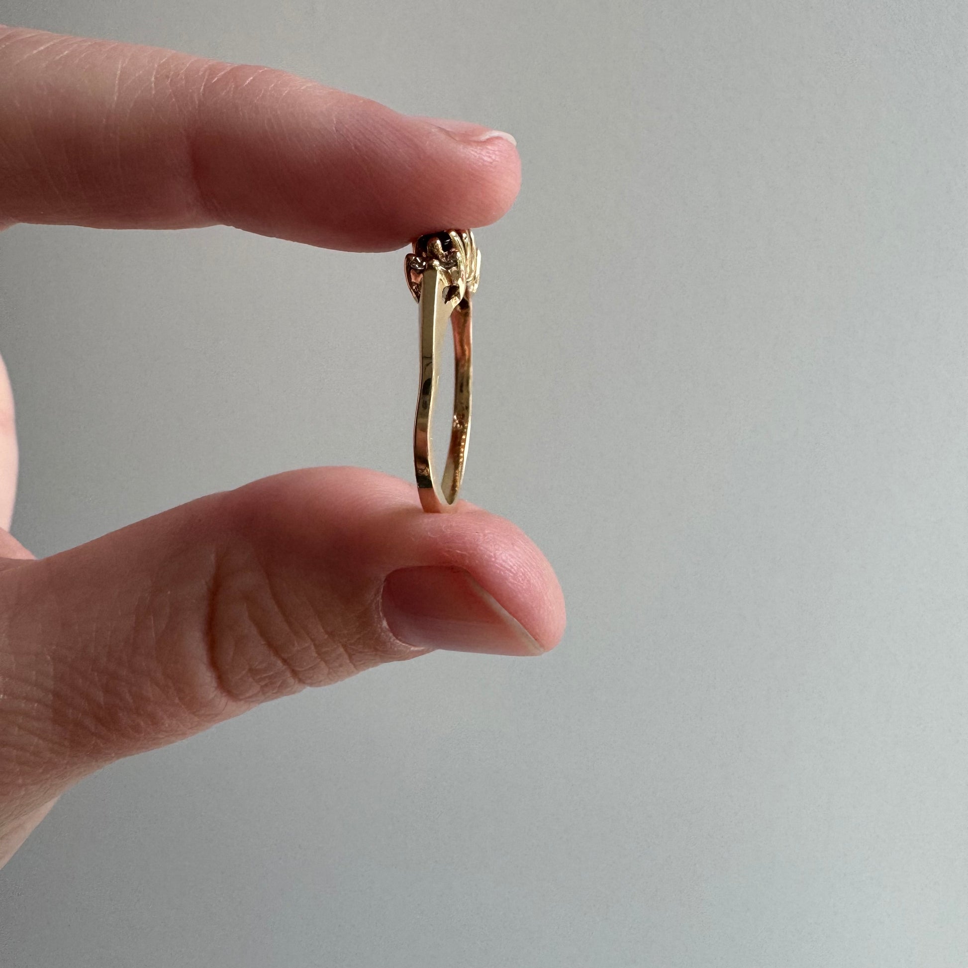the raised setting means that this band is less likely to spin on the finger, which keeps the stones at the top of the finger