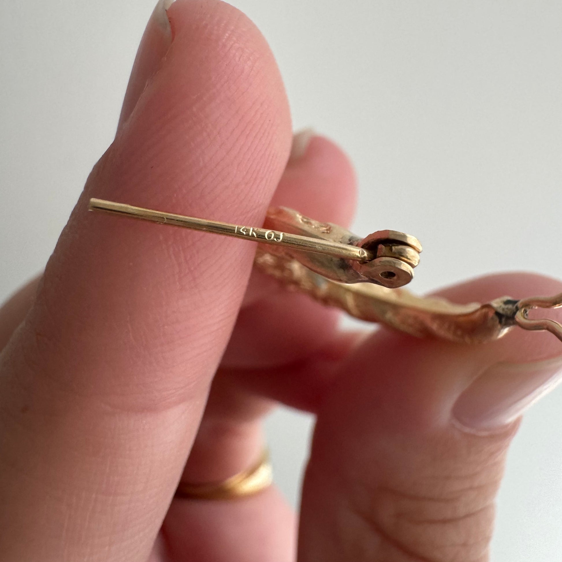 14k yellow gold (marked on ear wire), hollow form
