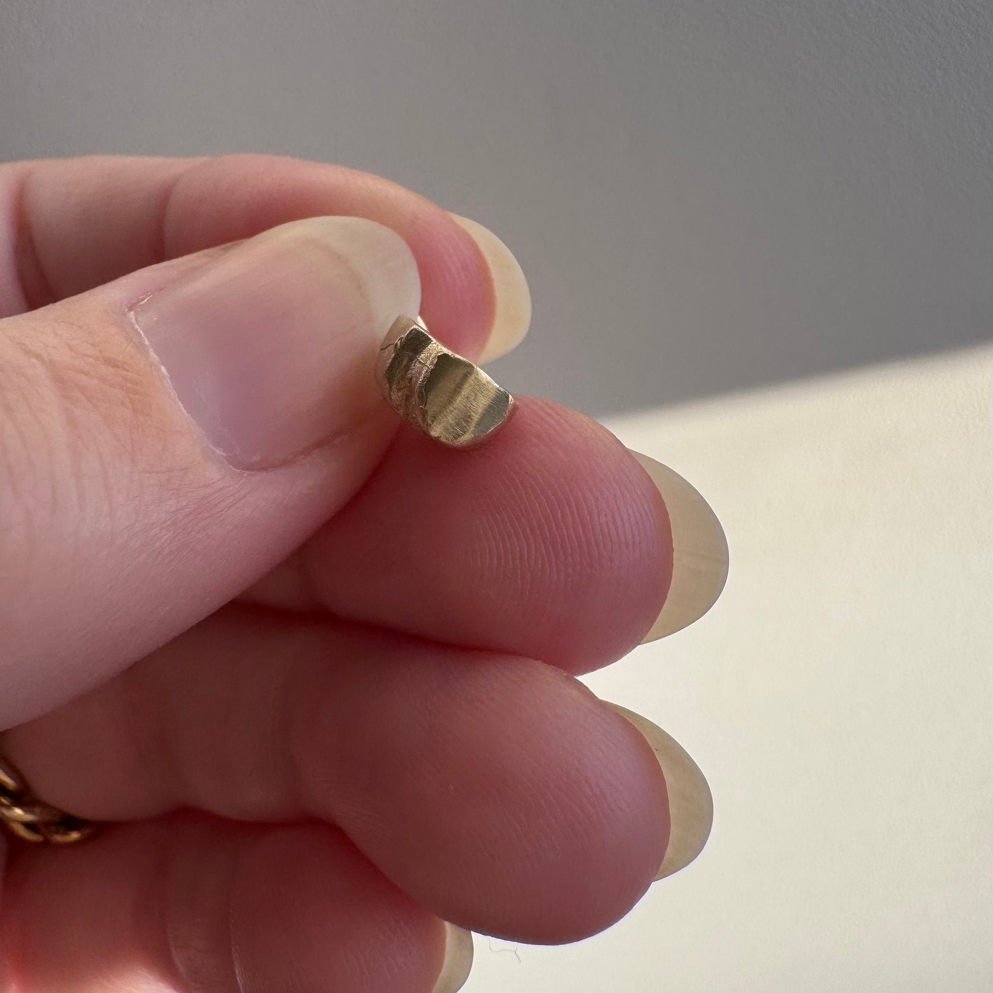 the surface of the gold has a slightly matte, pitted texture to give is a more organic look and feel