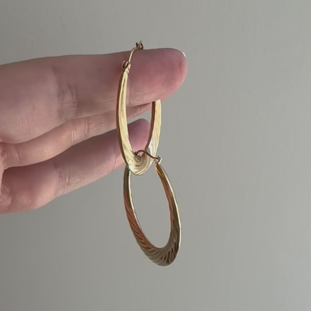 P R E - L O V E D // bright and shrimpy / 14k yellow gold ribbed hoops / over 1.25"