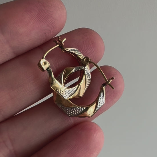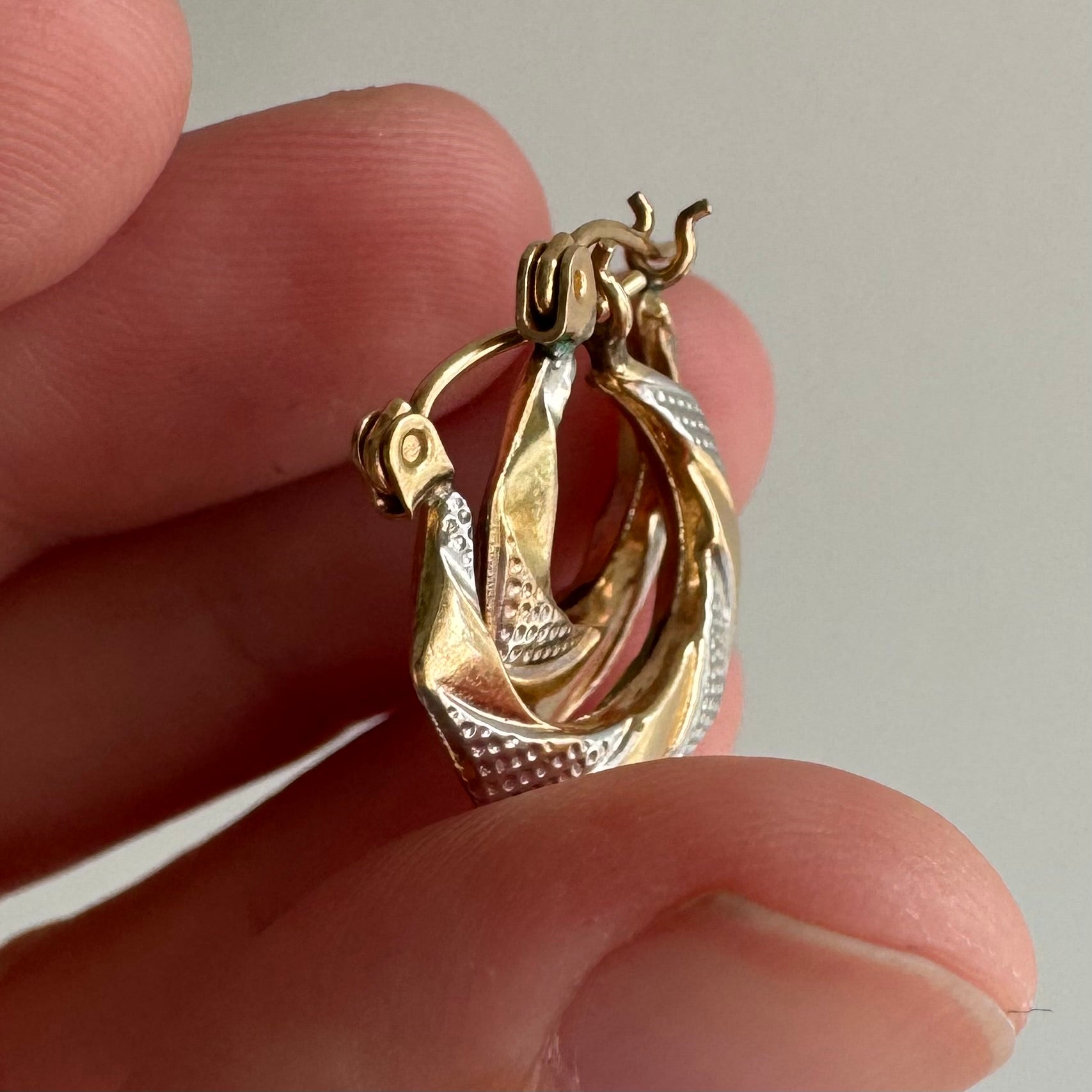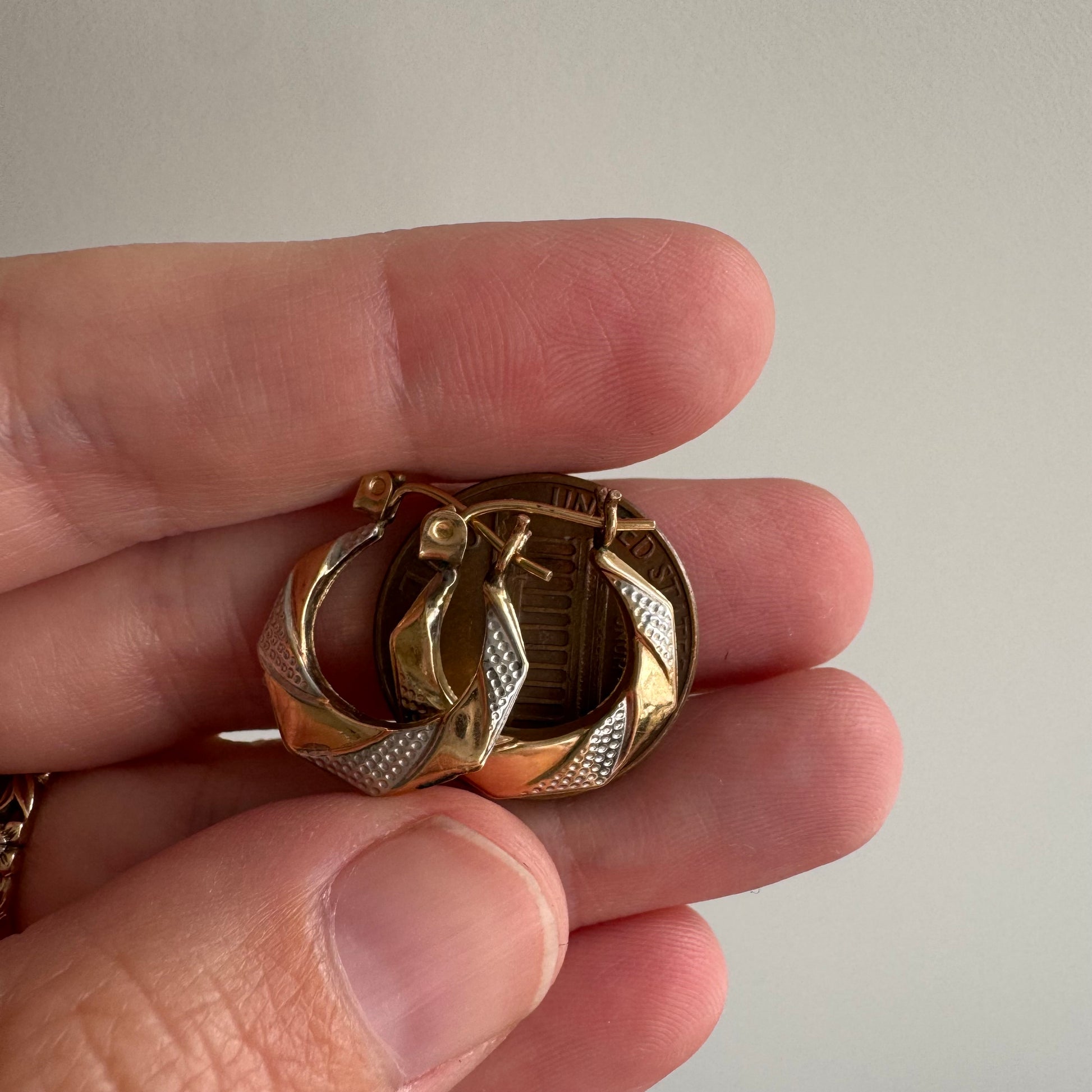 P R E - L O V E D // everyday geometry / 14k yellow and white gold hoops / ~5/8"