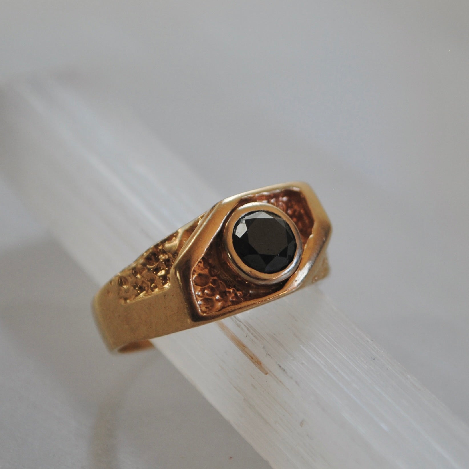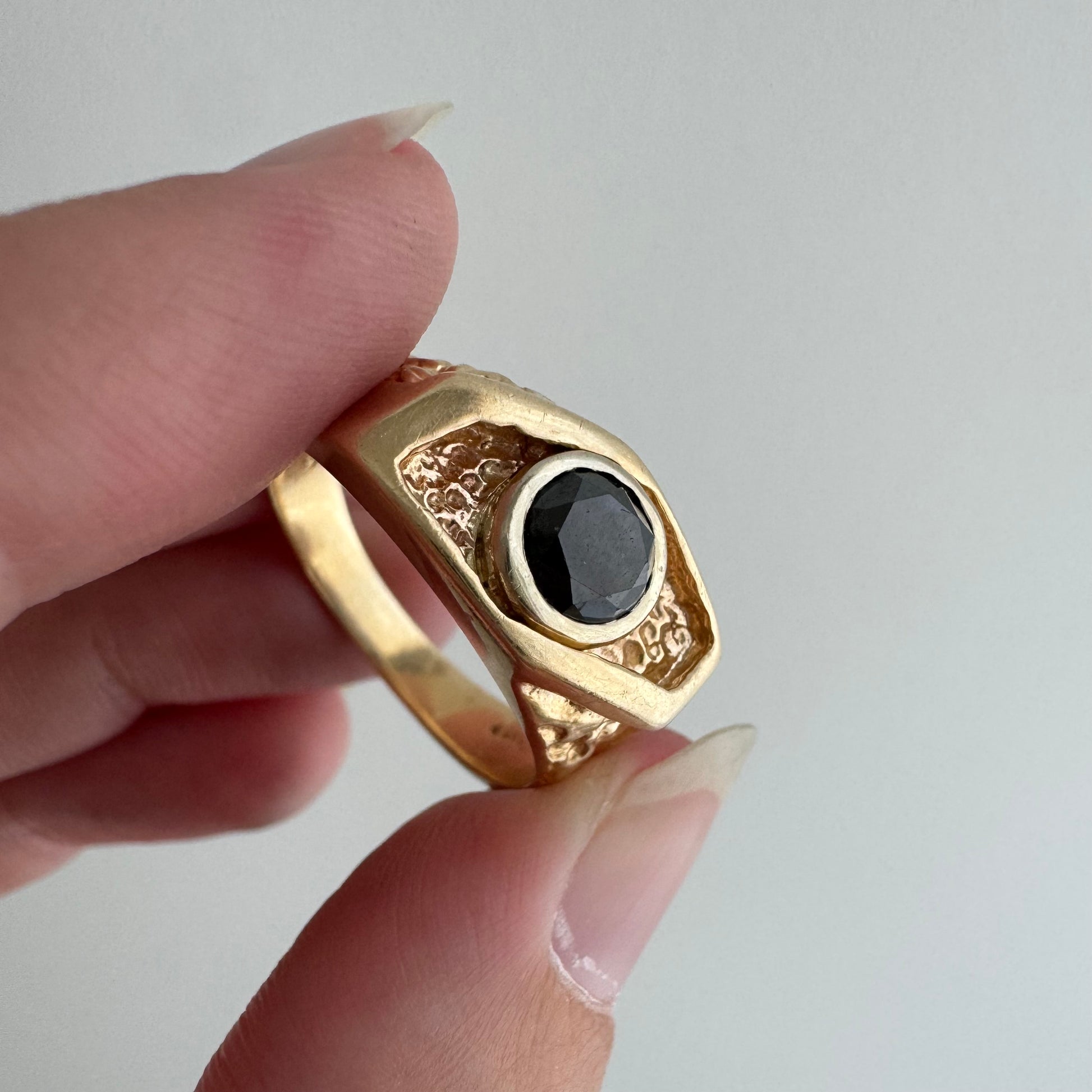 P R E - L O V E D // side eye / 14k and black diamond solitaire stacking shadowbox ring / size 8.25