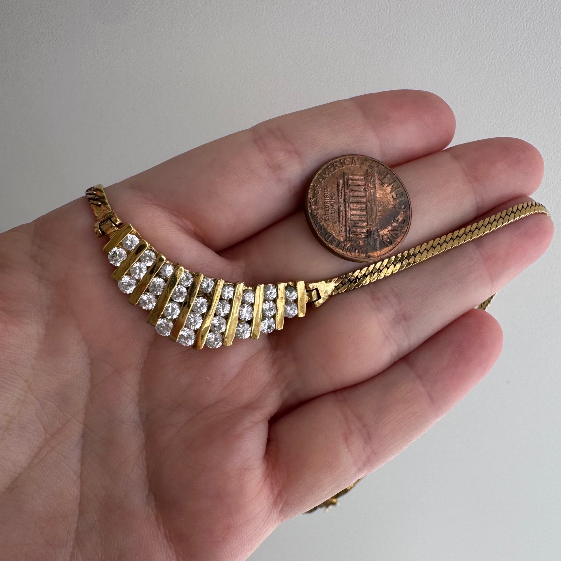 P R E - L O V E D // sparkle channels / gold over sterling silver and CZ herringbone necklace / 17.5", 16.1g