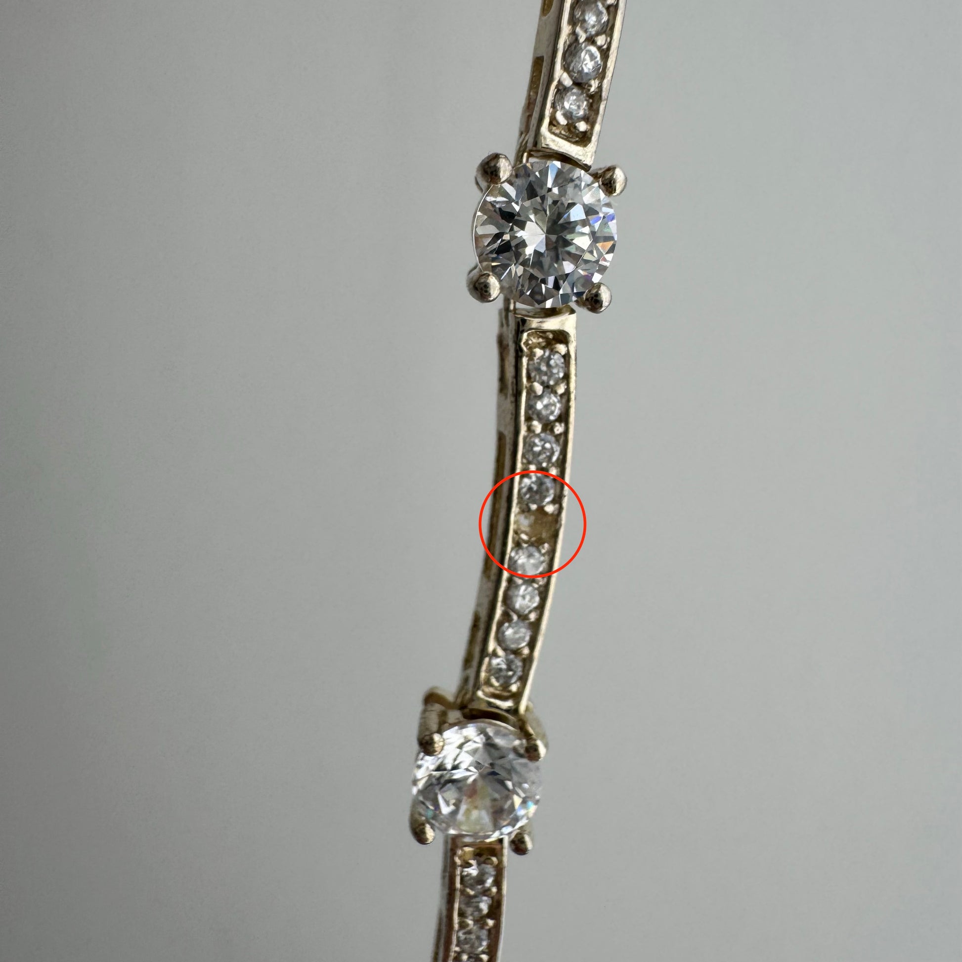 -one of the tiny pave-set stones is gone — price reflects this flaw
