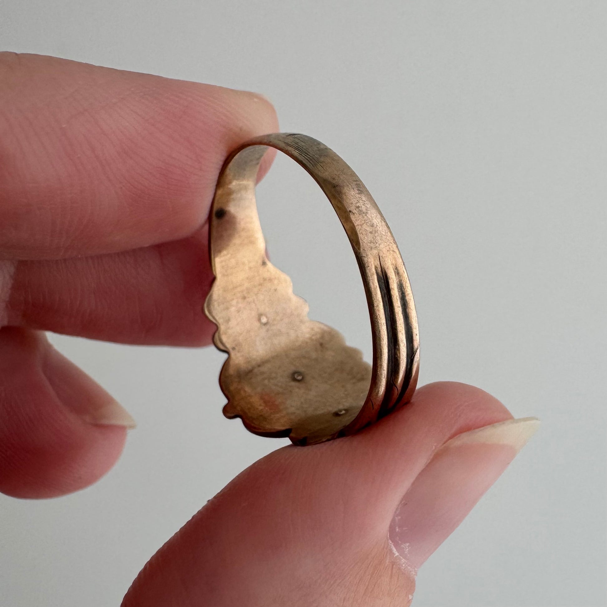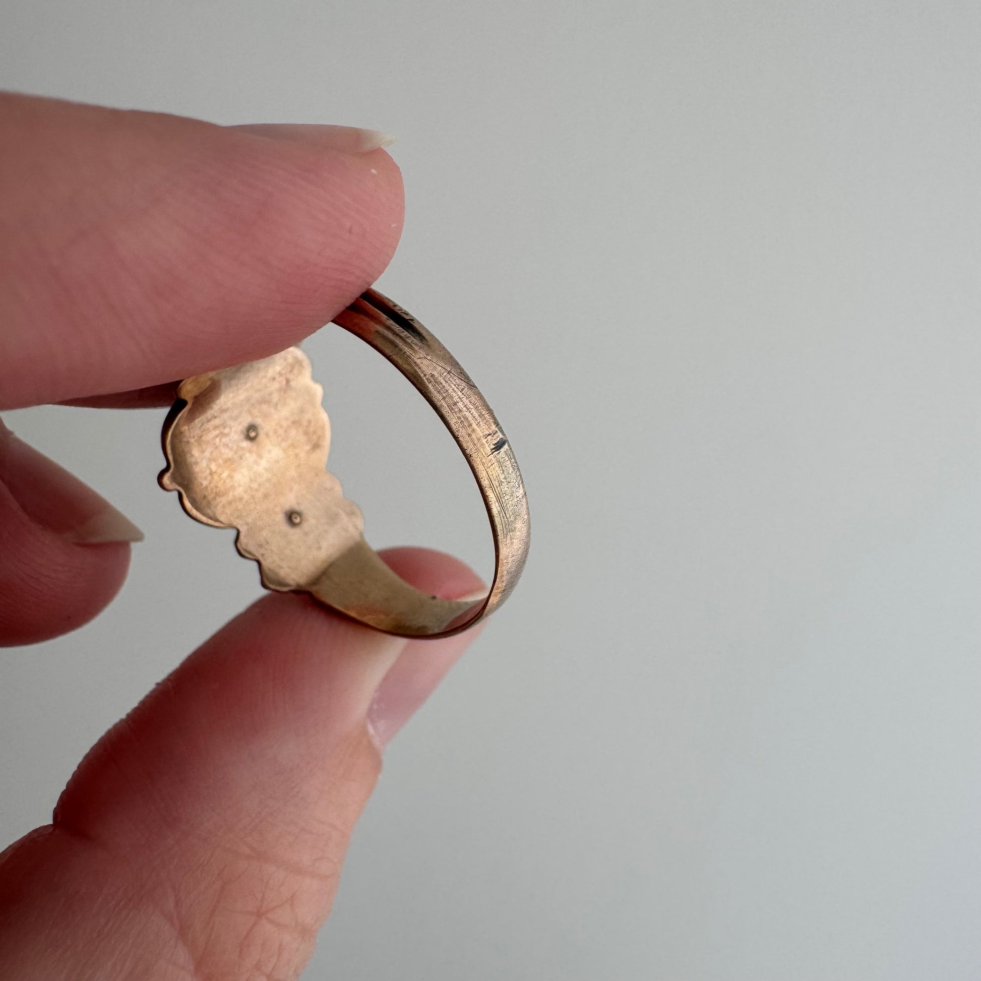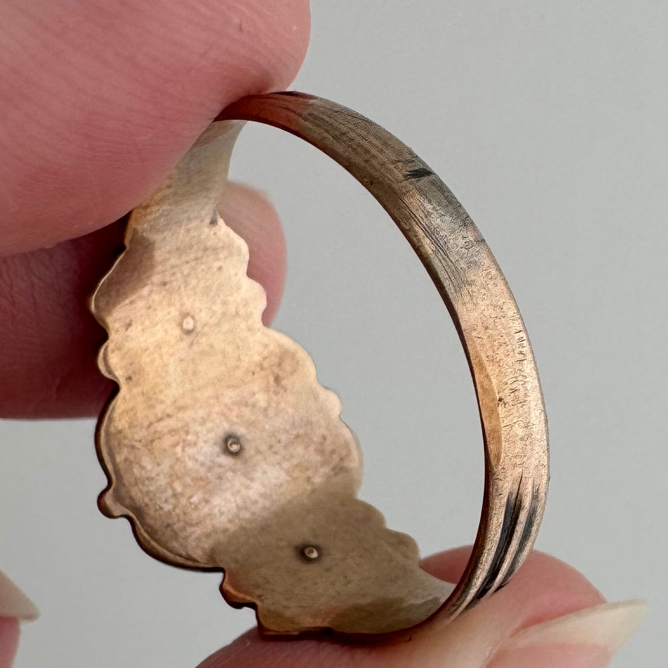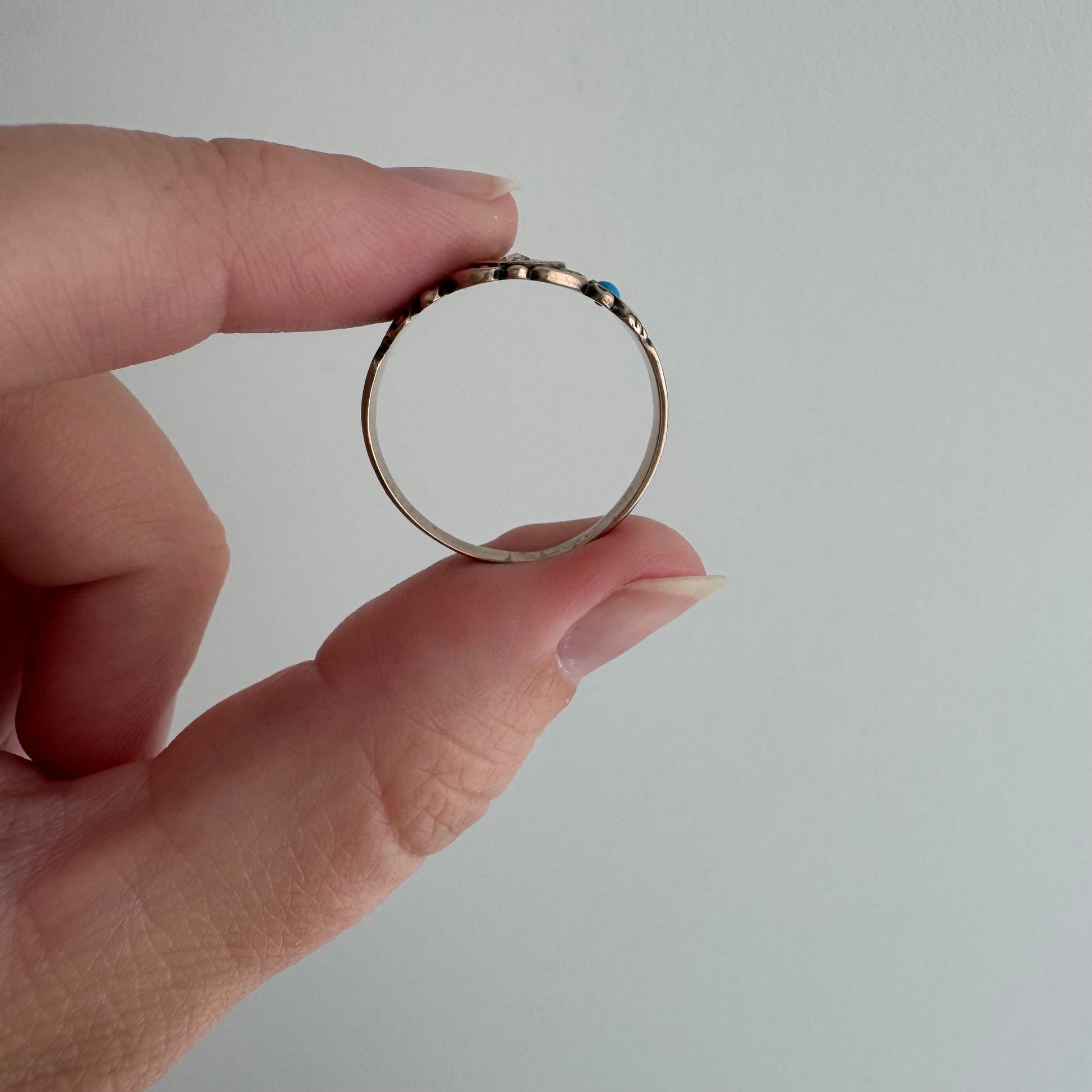 rehabbed A N T I Q U E // 9k rose gold starburst trilogy signet band with turquoise and rose cut diamond / size 9.25