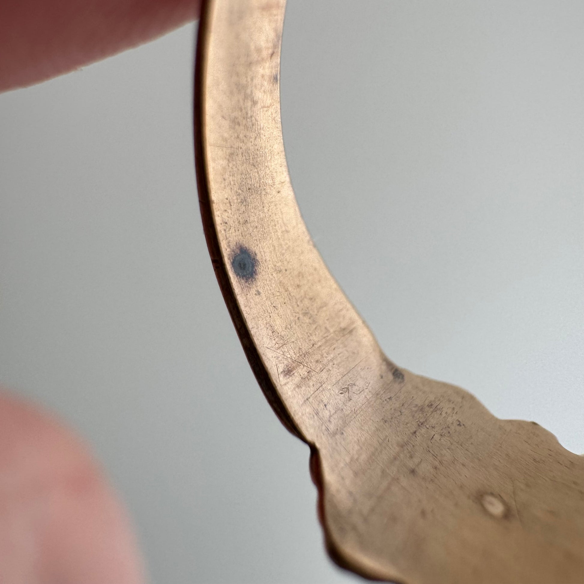 -very often these true antique bands were worn daily and have lost their structural integrity to time-earned wear and friction, which result in the gold being brittle. this piece looks like it was stored more than it was worn, which has resulted in plenty of surface scratches, dents and dings, surface dulling throughout the gold, but it's still structurally sound