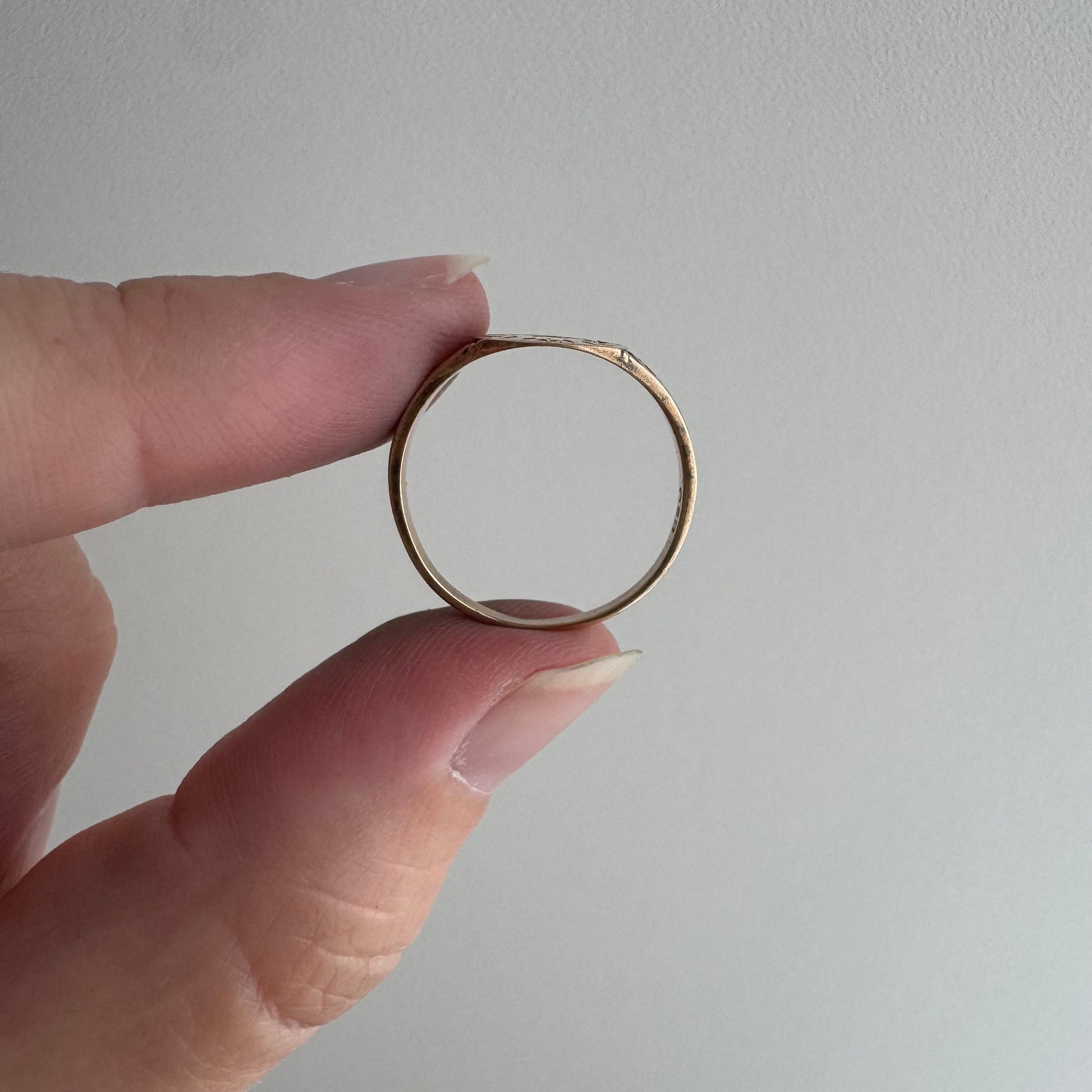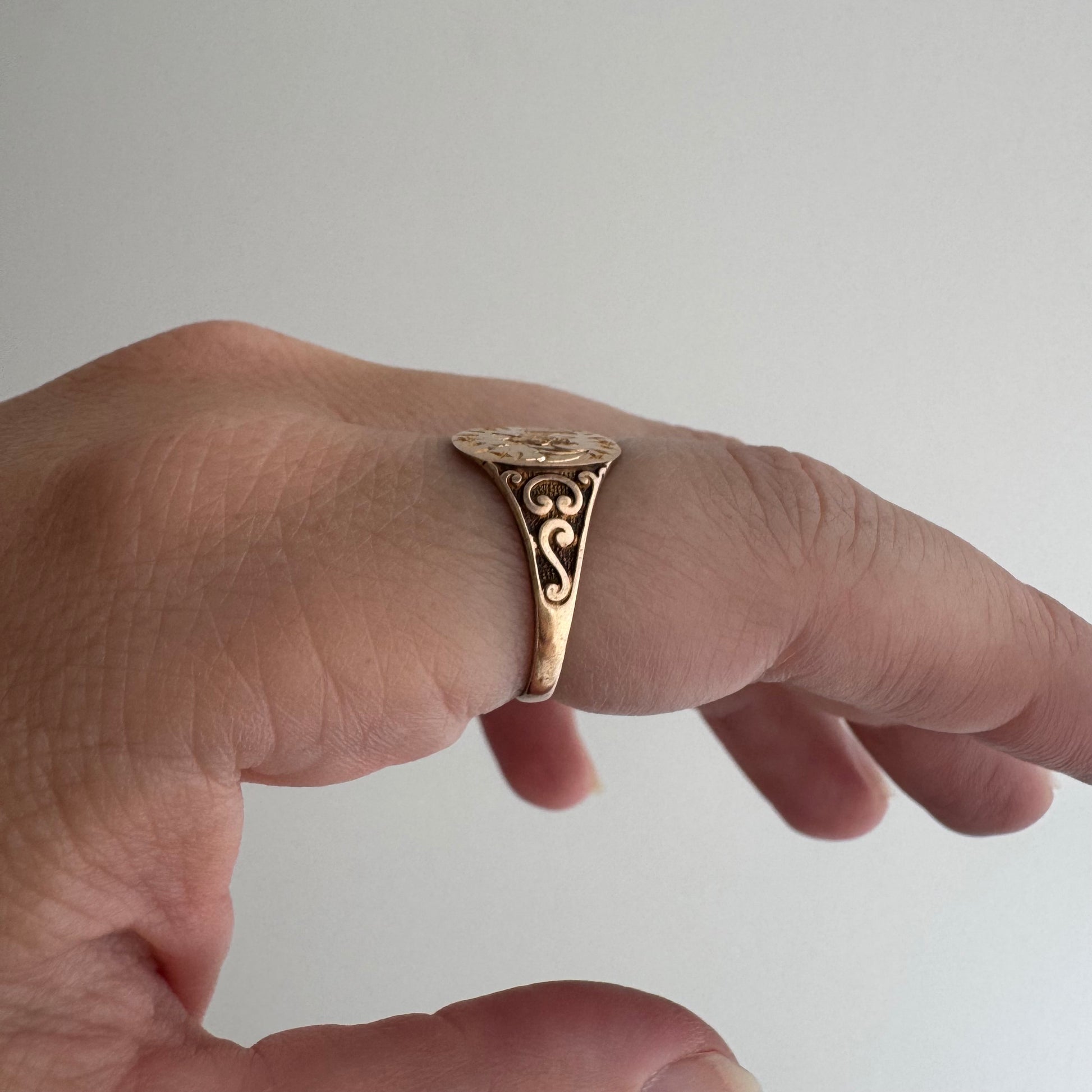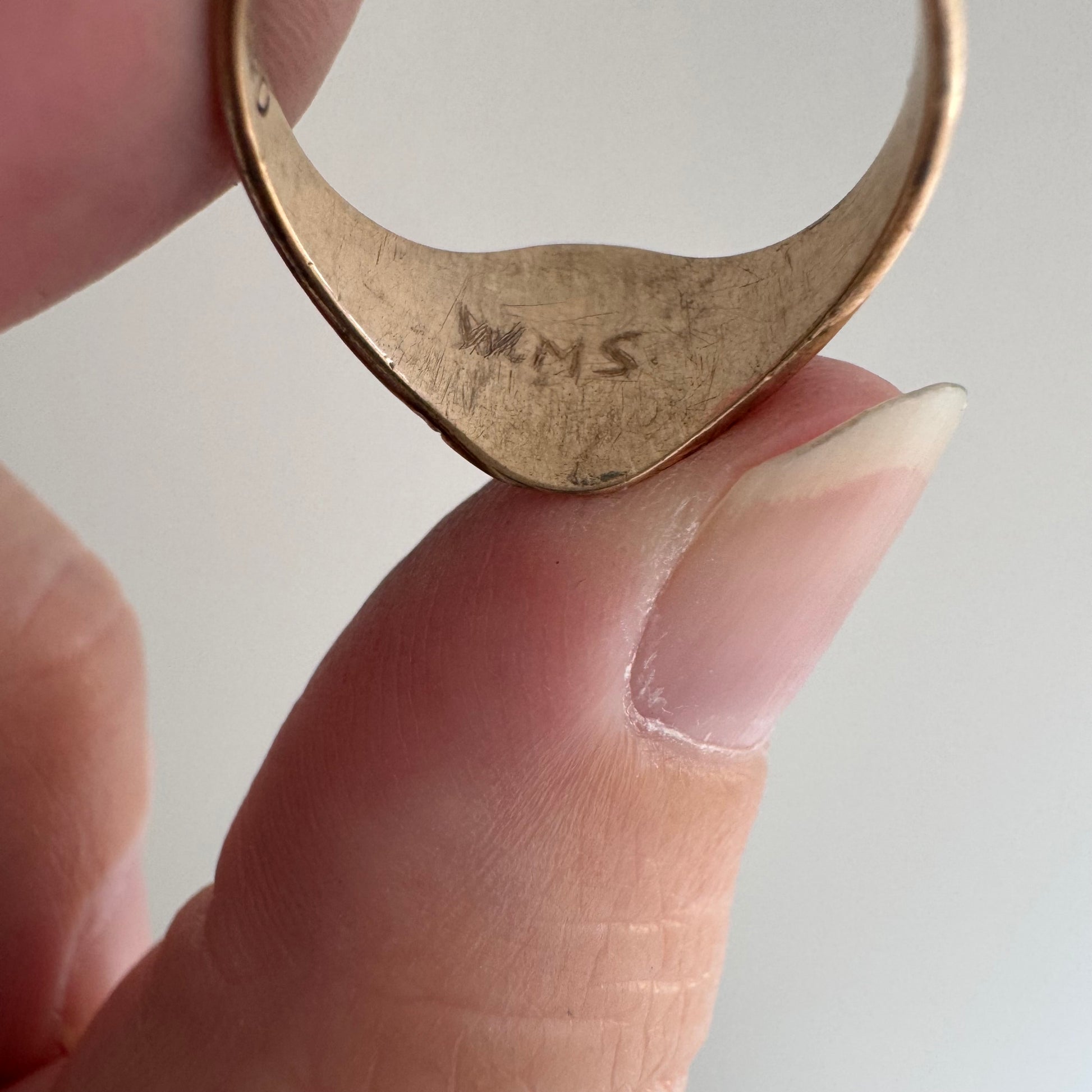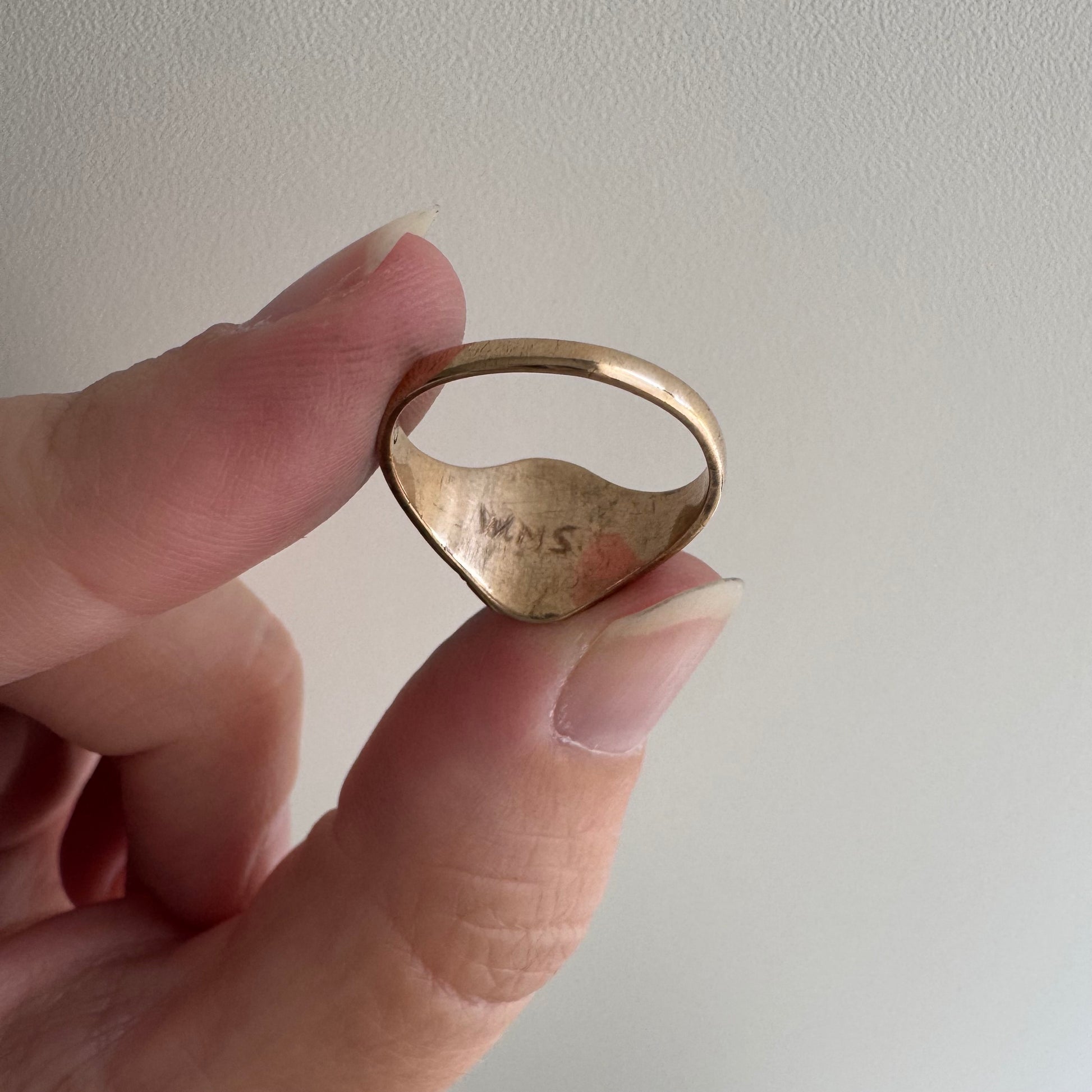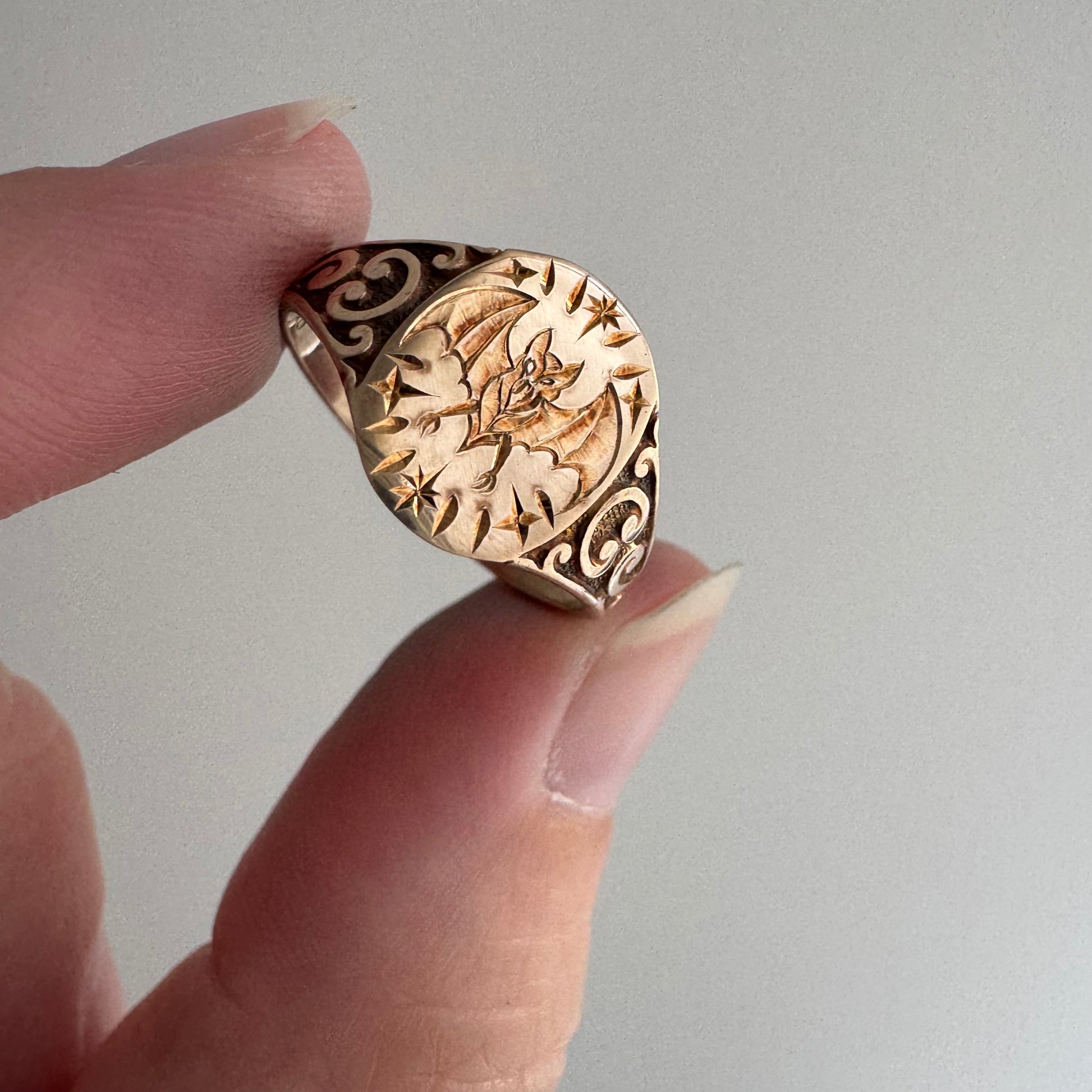 reimagined A N T I Q U E // intuitive guide / 10k rosy yellow signet with a newly engraved bat / size 5.75