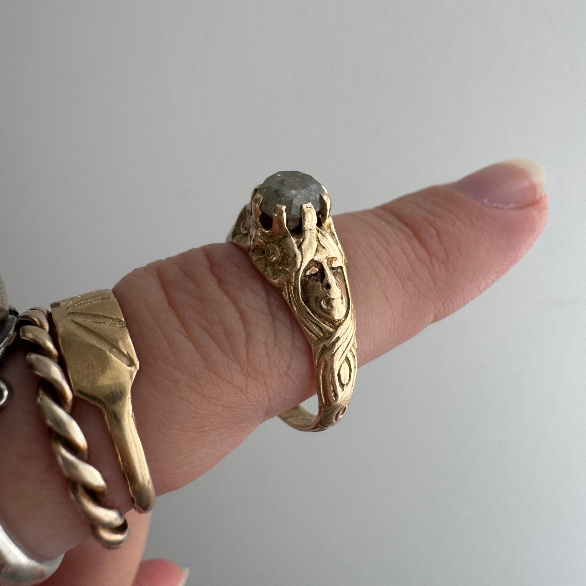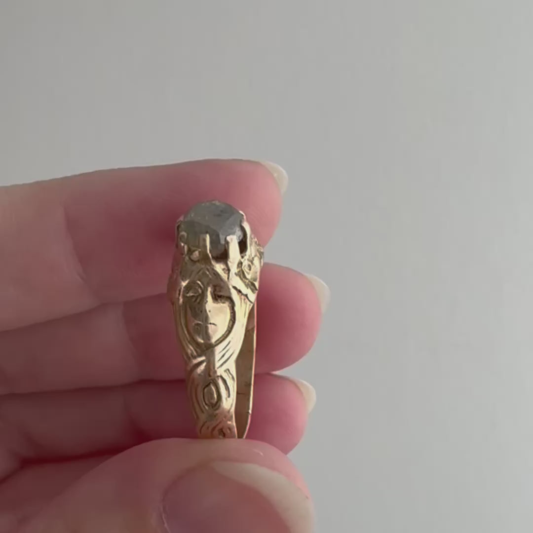 reimagined V I N T A G E // good goddess / 14k and 1.25 carat salt & pepper diamond art nouveau goddess solitaire ring / size 8