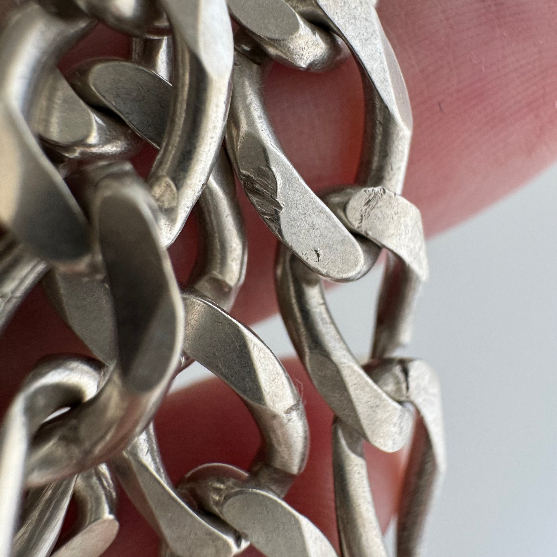 -chain is vintage and has been cleaned and lightly polished, but not buffed, so it has more of a matte luster and some original inconsistencies to the surface of some of the links
